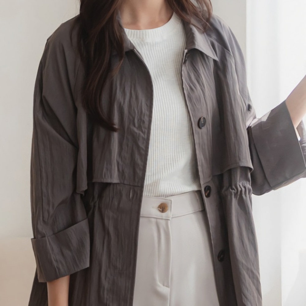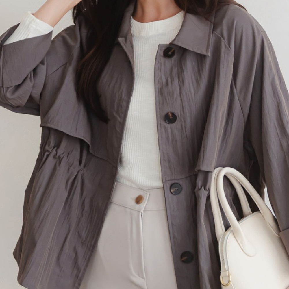 여성 리플랩 소매 롤업 스트링 카라 자켓