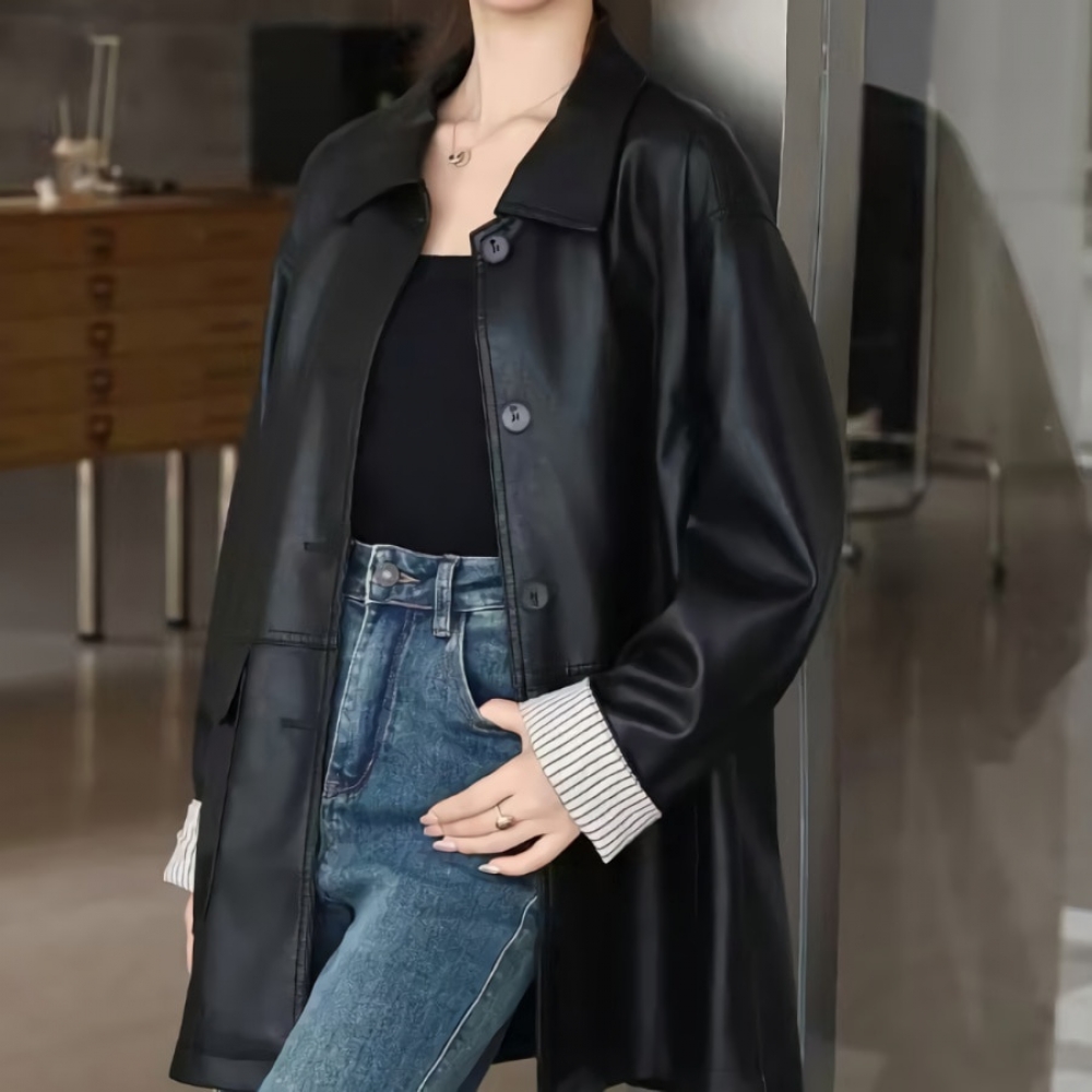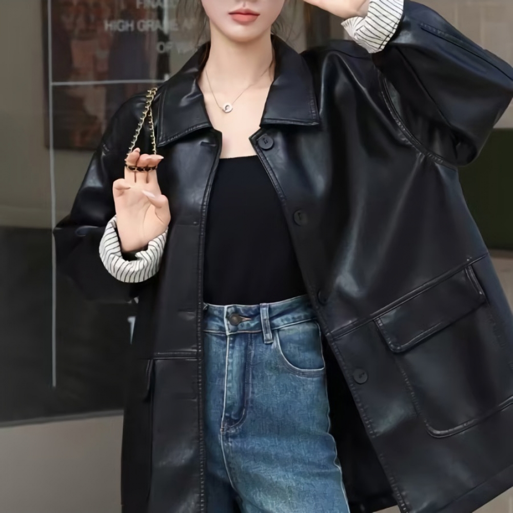 여성 가을 겨울 오버핏 하프 레더 자켓