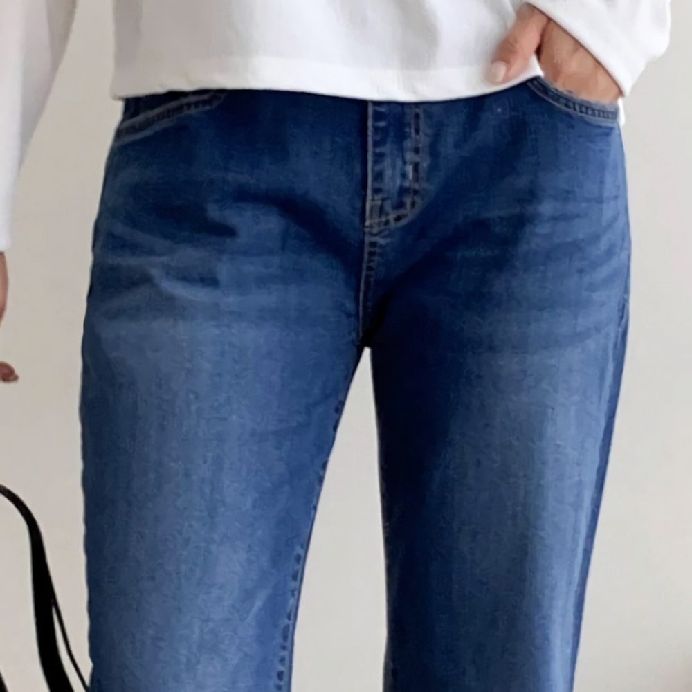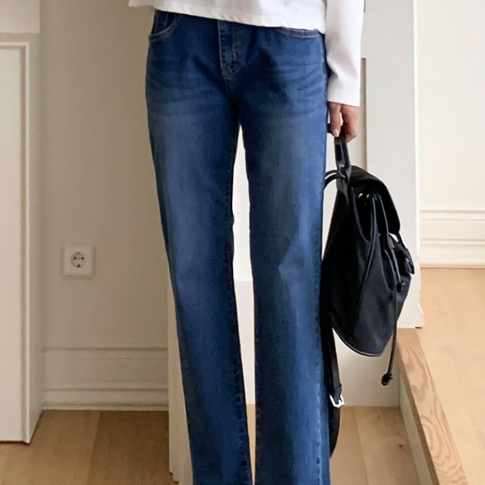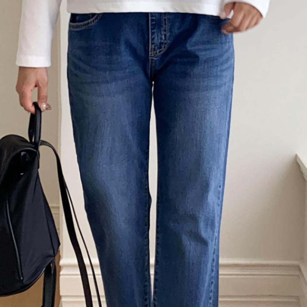 여성 빈티지 워싱 일자 밴딩 데님 팬츠