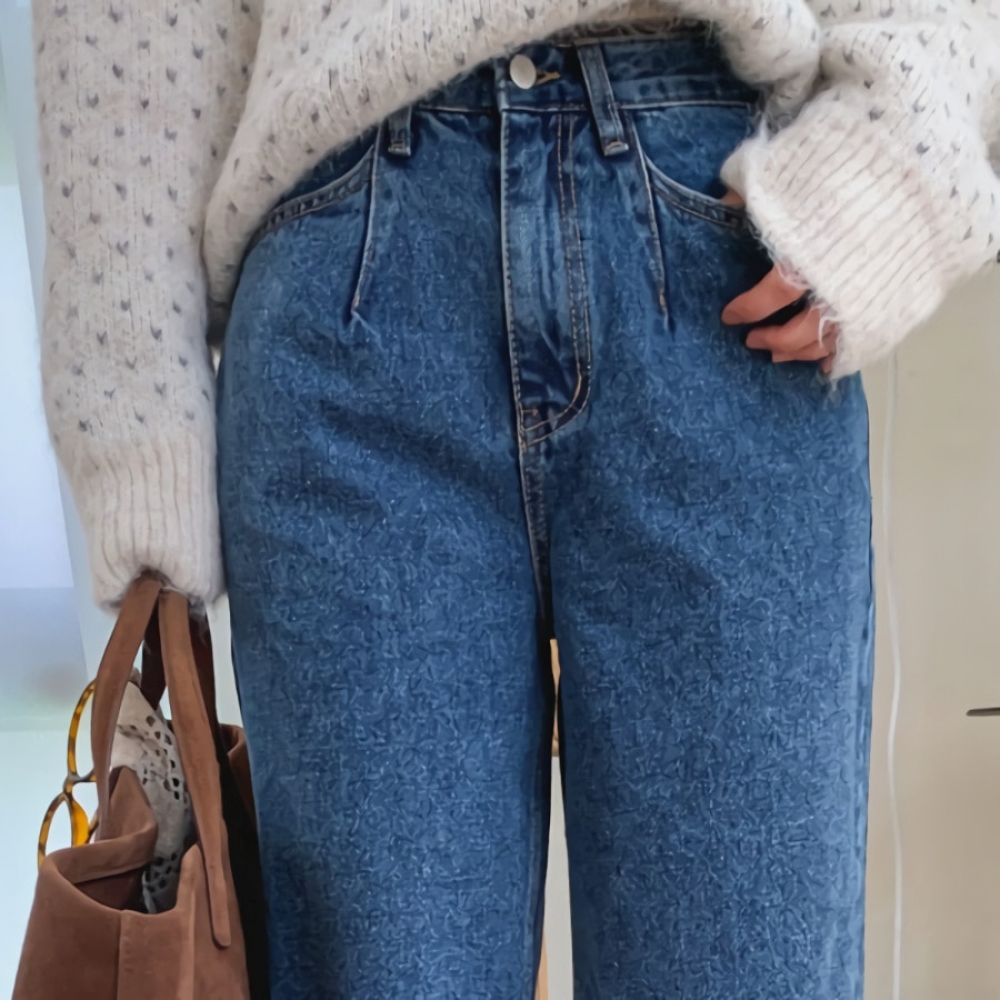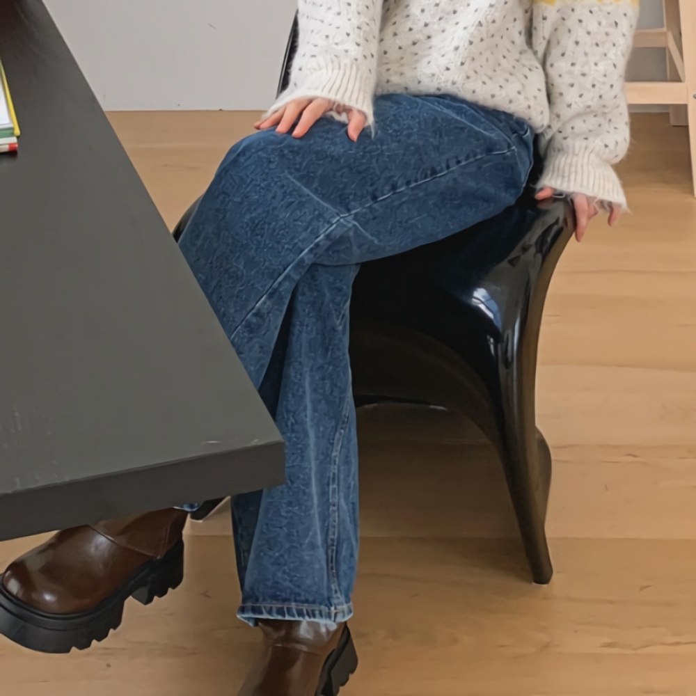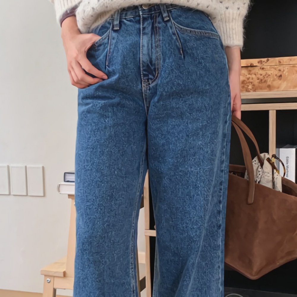 여성 핀턱 포인트 와이드 일자 데님 팬츠