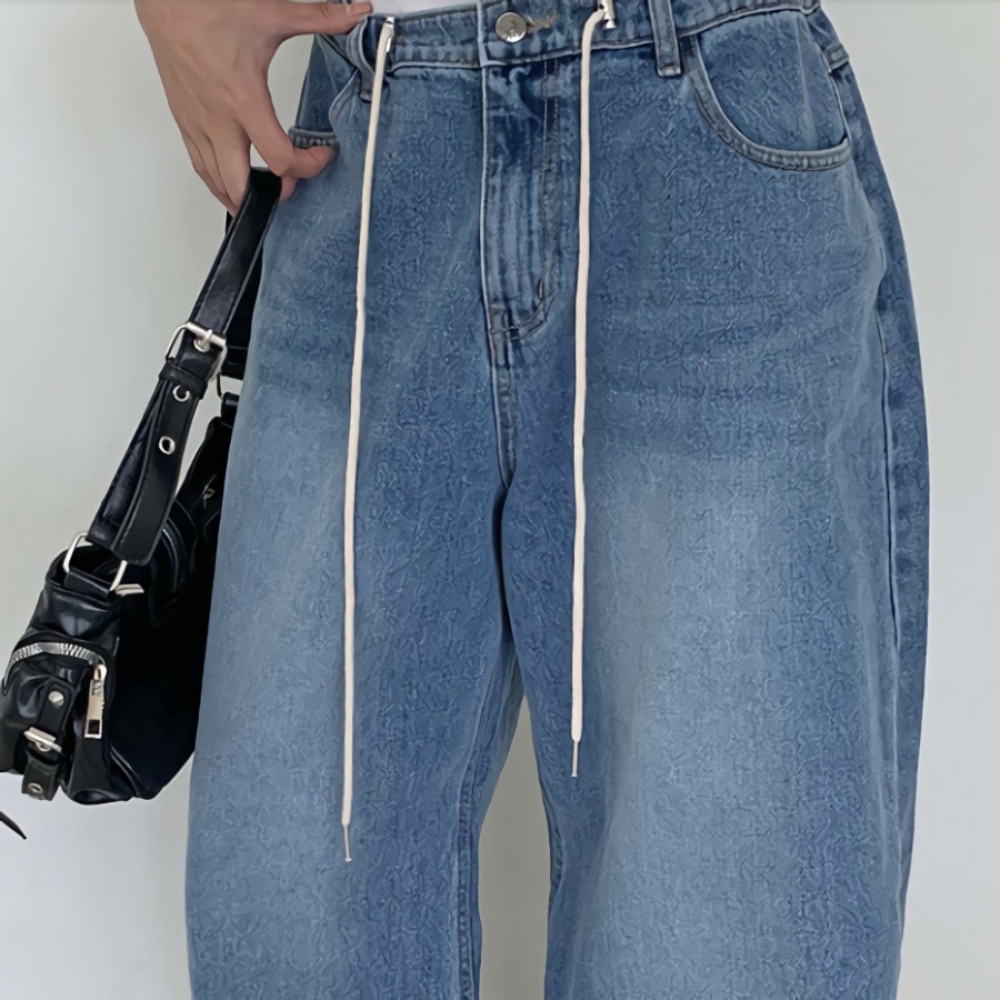 여성 사이드 절개 라인 와이드 데님 팬츠