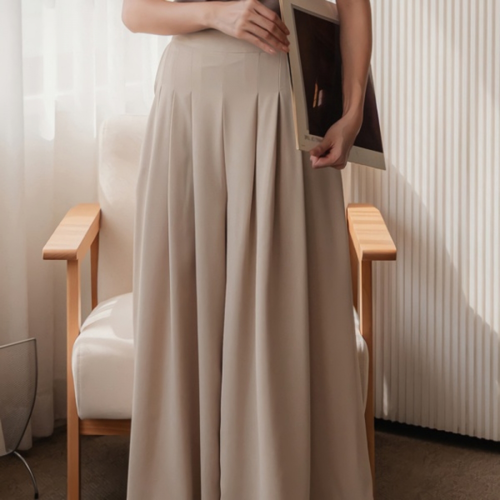 여성 겨울 미션 플리츠 밴딩 와이드 팬츠