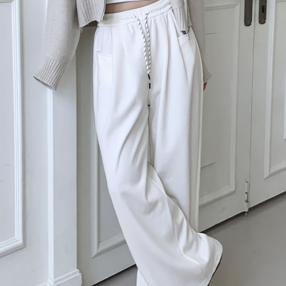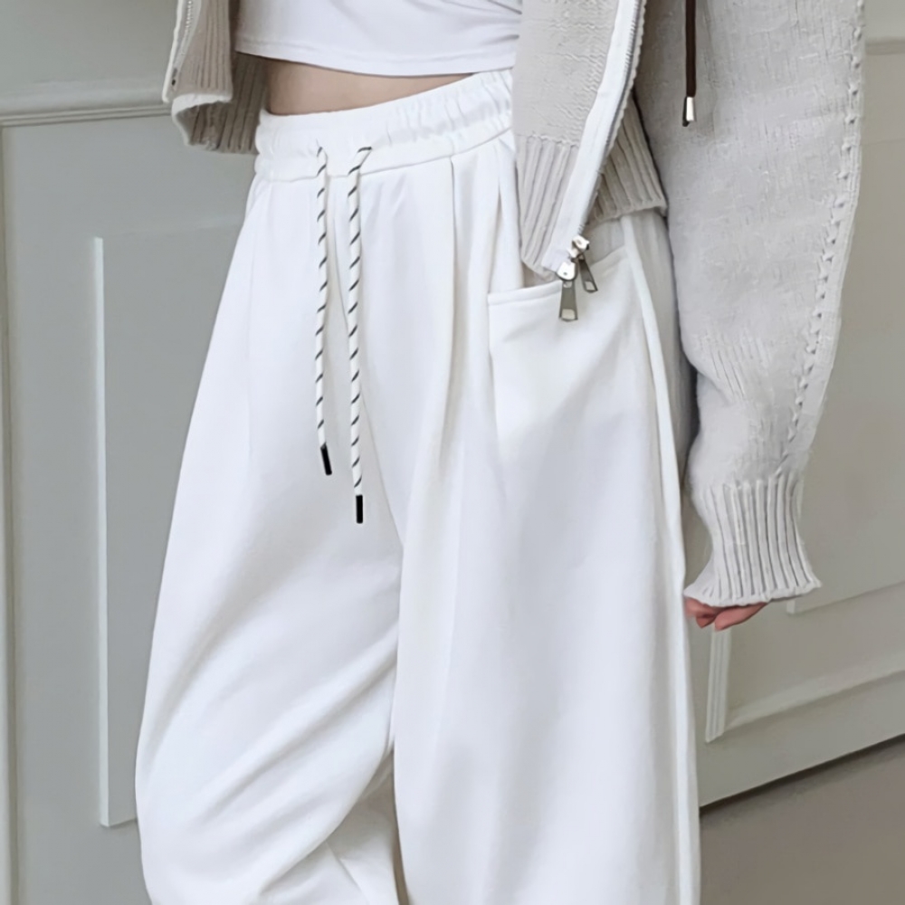 여성 겨울 스트링 포켓 와이드 밴딩 팬츠