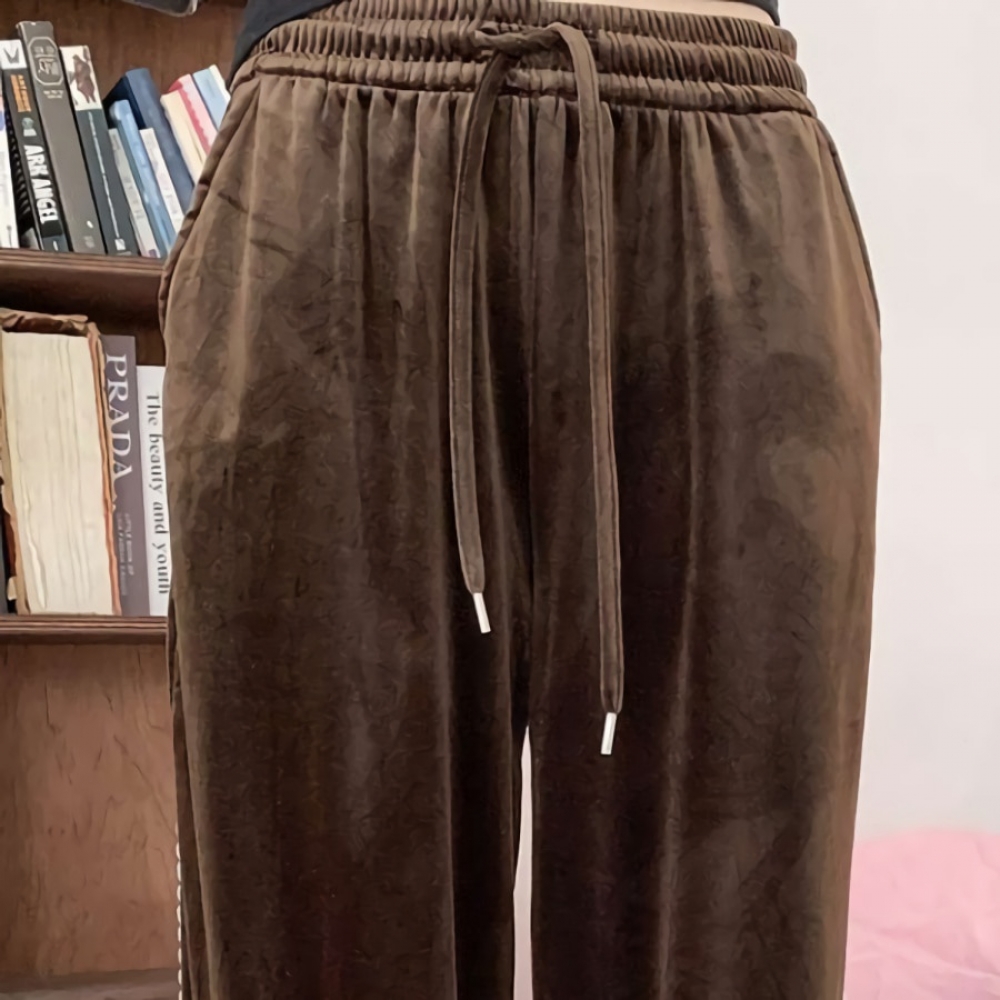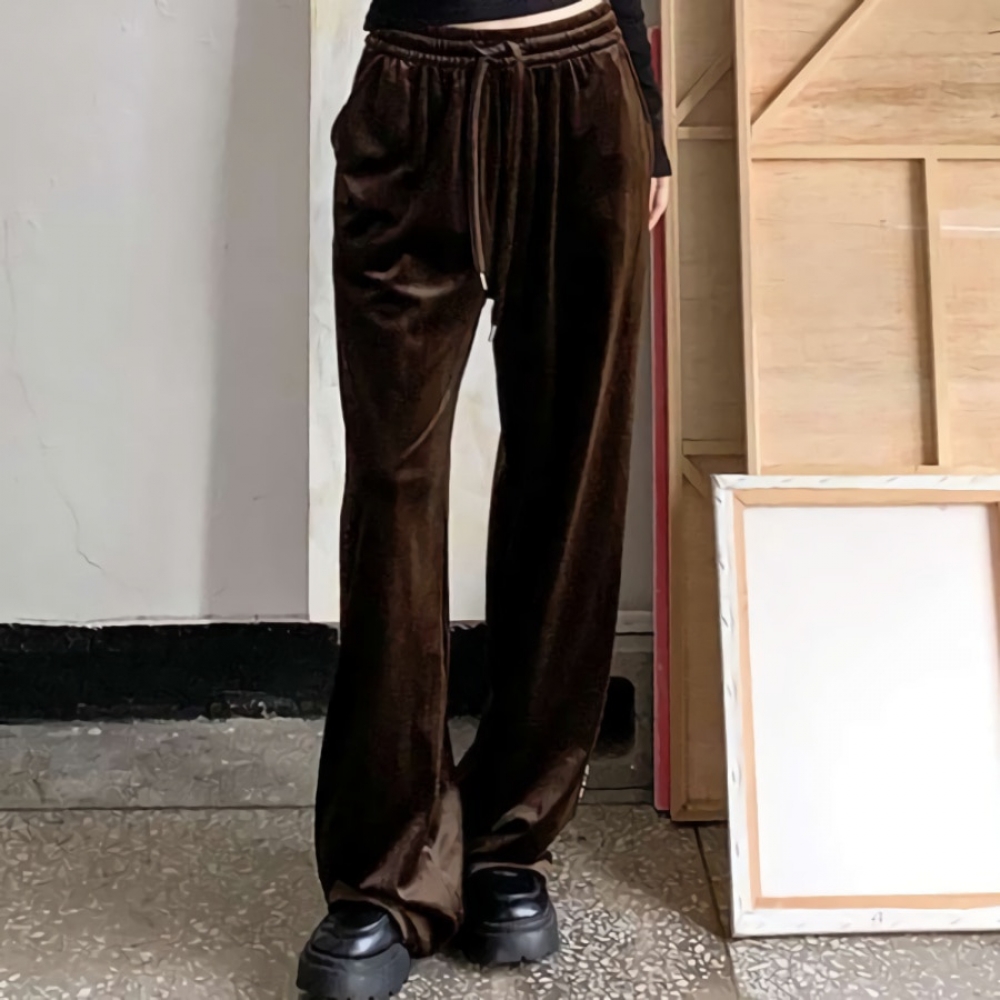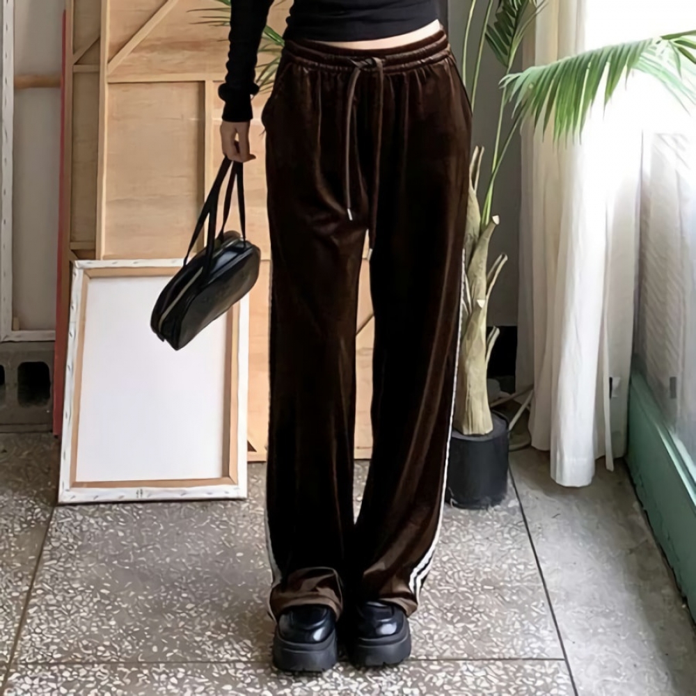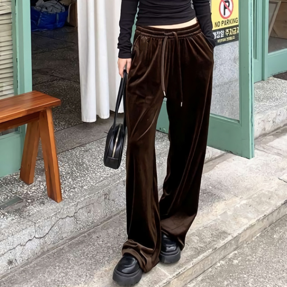 여성 겨울 레이스 라인 밴딩 벨벳 팬츠