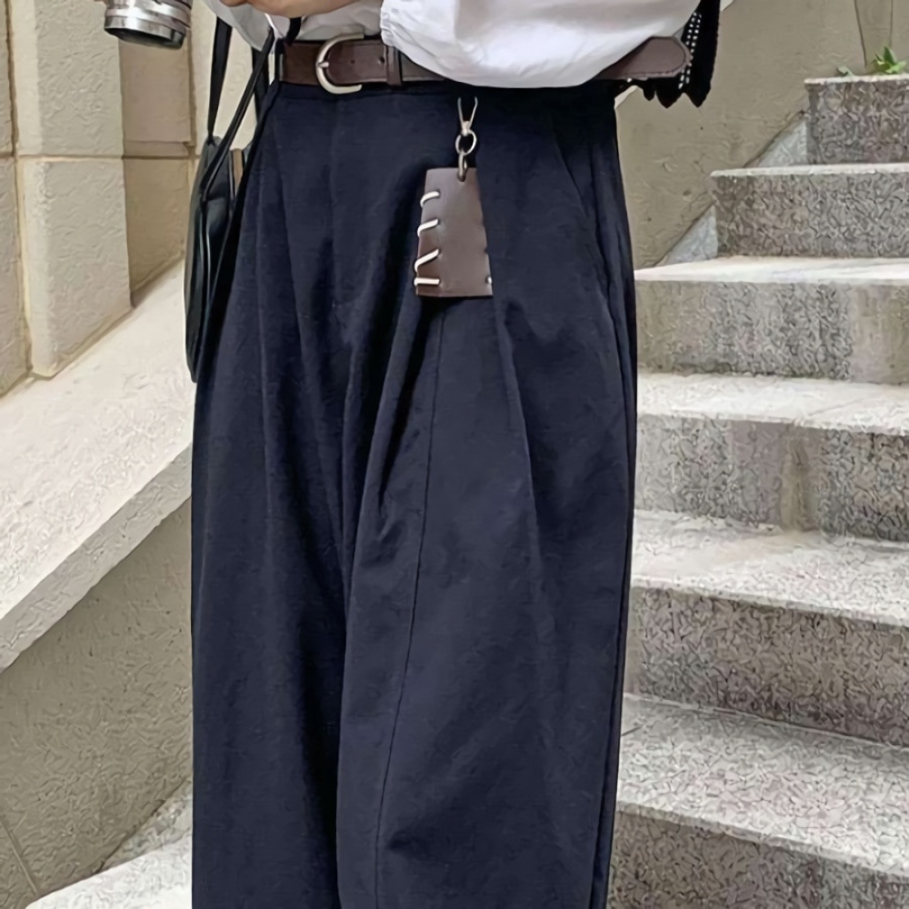 여성 키링 벨트 세트 핀턱 빅 와이드 팬츠