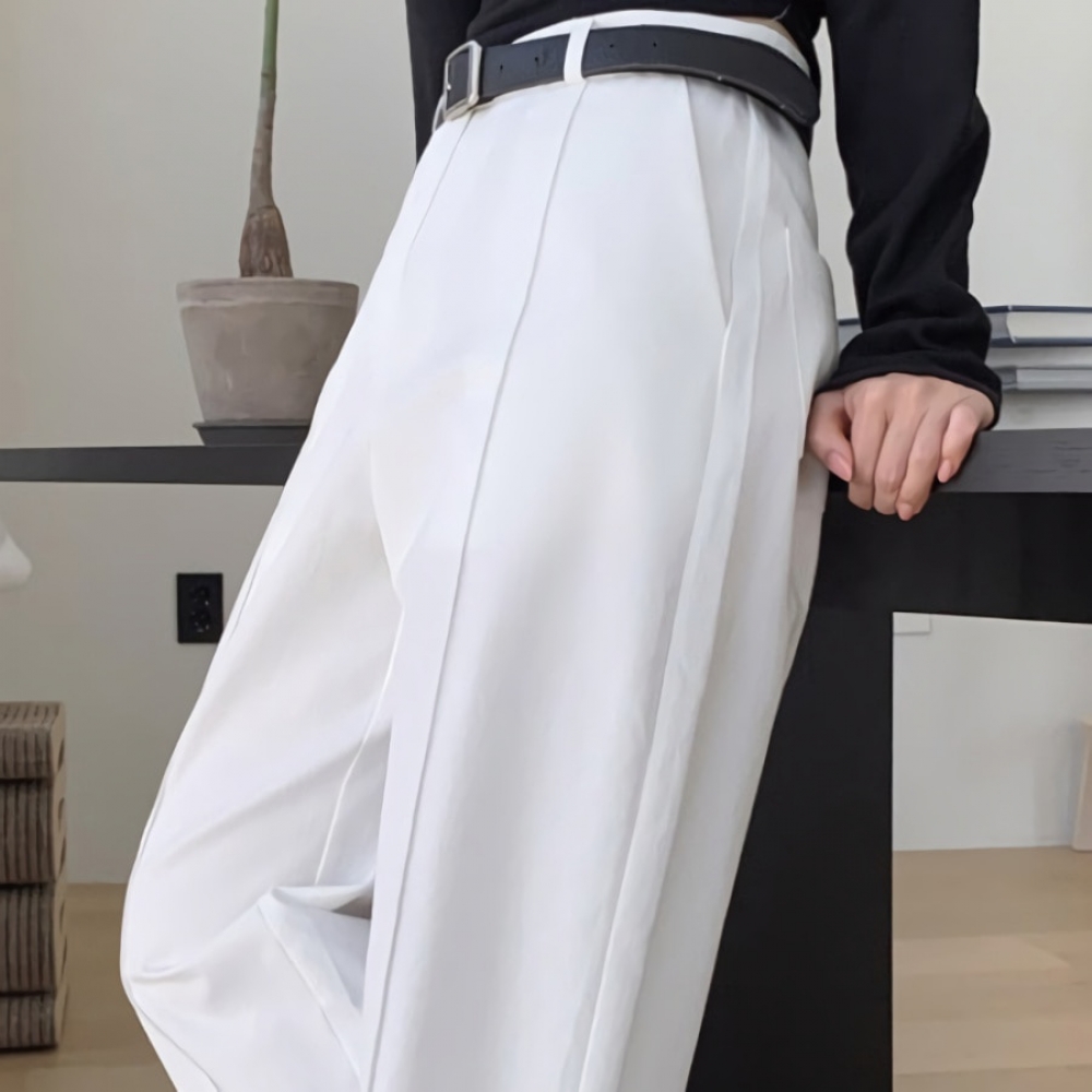 여성 가을 겨울 핀턱 라인 와이드 코튼 팬츠