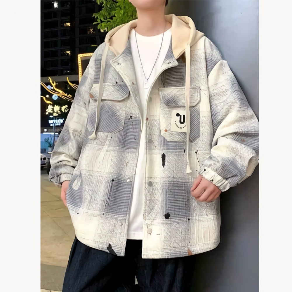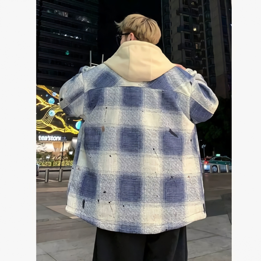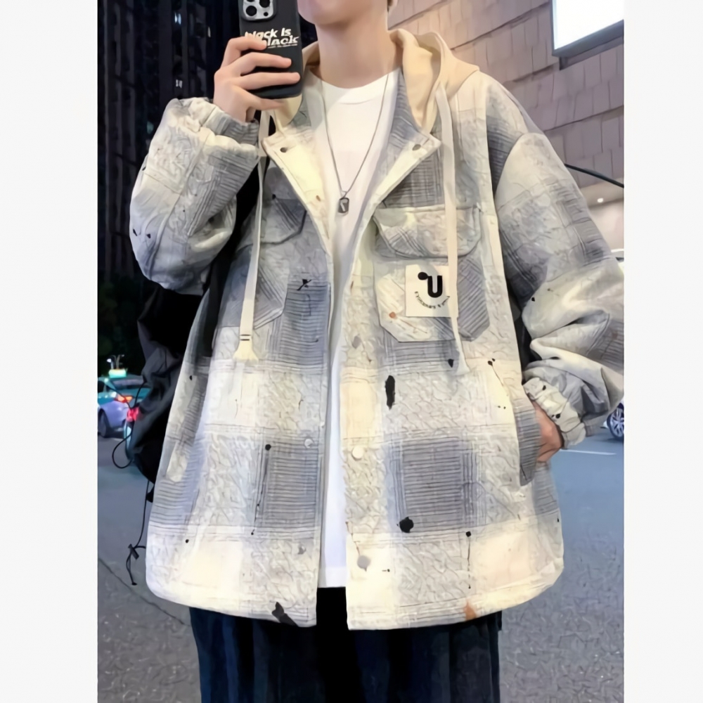 남성 겨울 체크 코트 후드 빅사이즈 캐주얼 재킷
