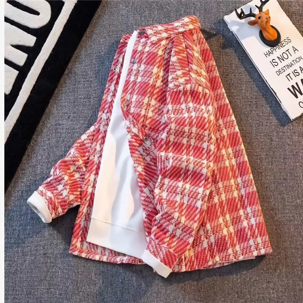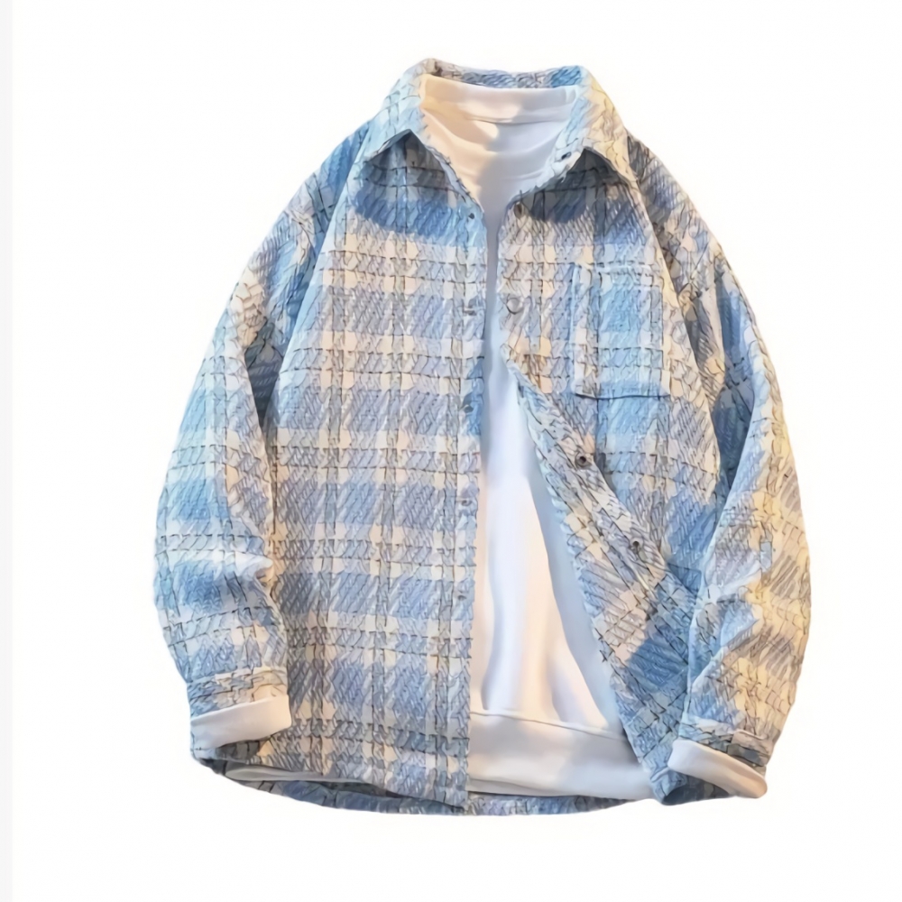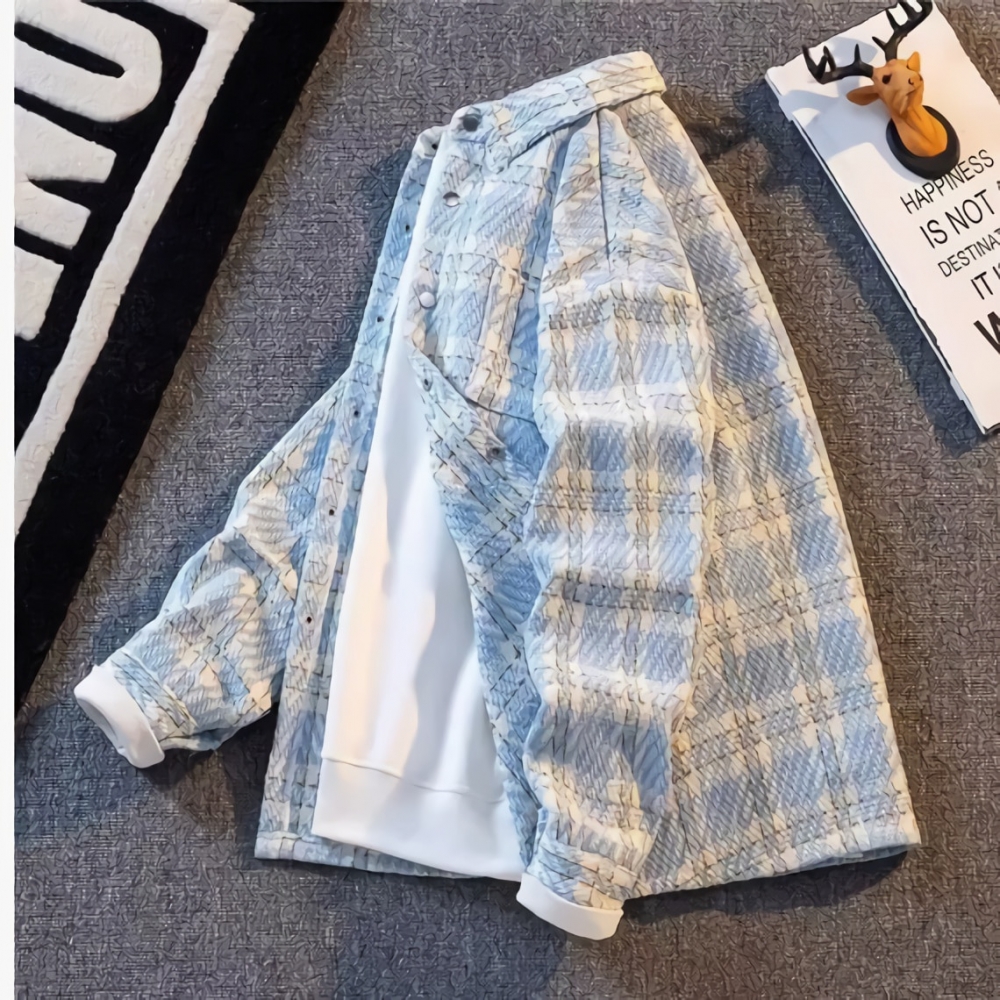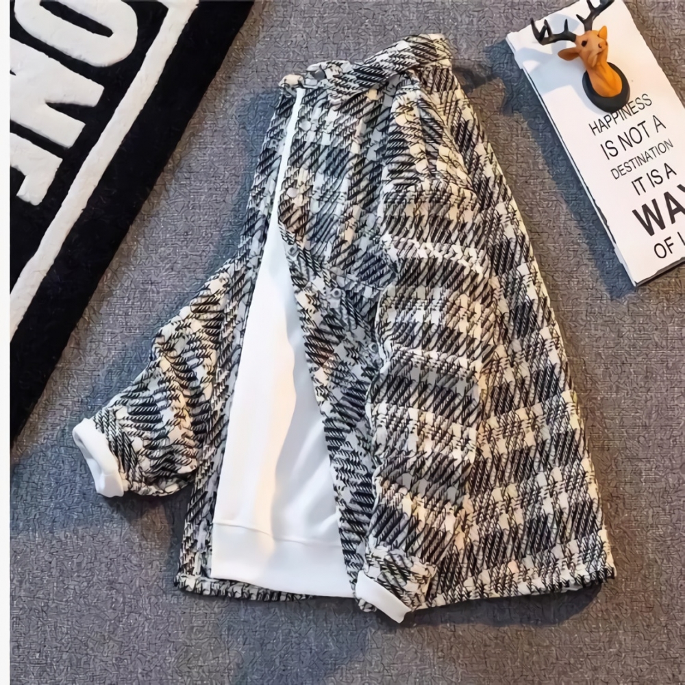 남성 샤무드 모직 코트 루즈핏 고급 체크 셔츠 자켓