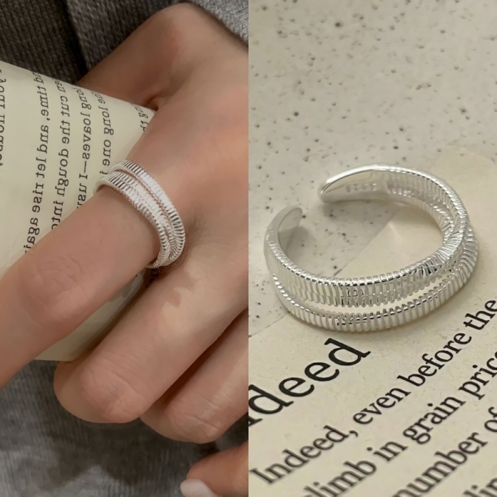 여성 s925 실버 레이어드 앤틱 볼드 오픈 반지