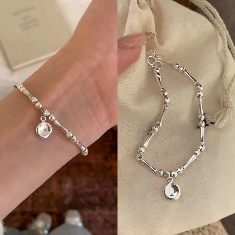 여성 s925 실버 슬라브 링 볼 드롭 팔찌