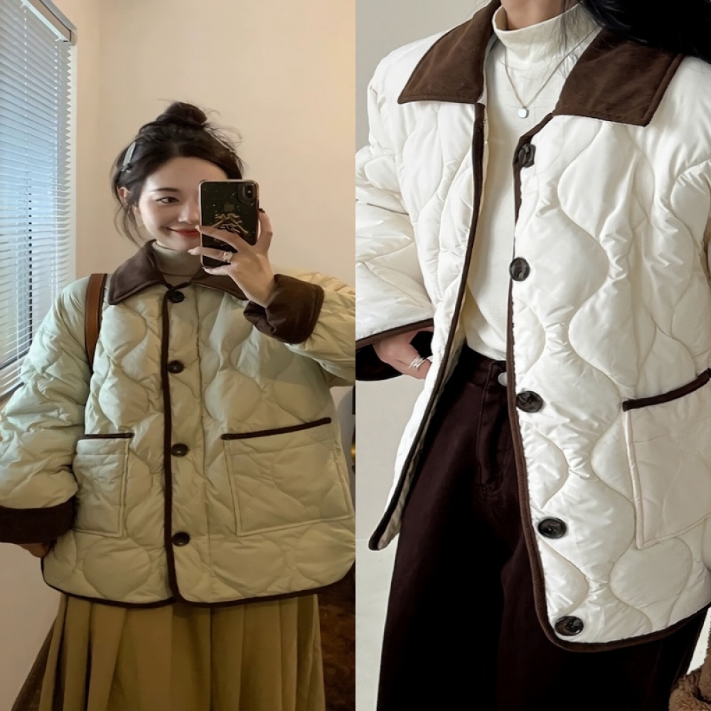 여성 겨울 3color 배색 카라 퀼팅 경량 패딩