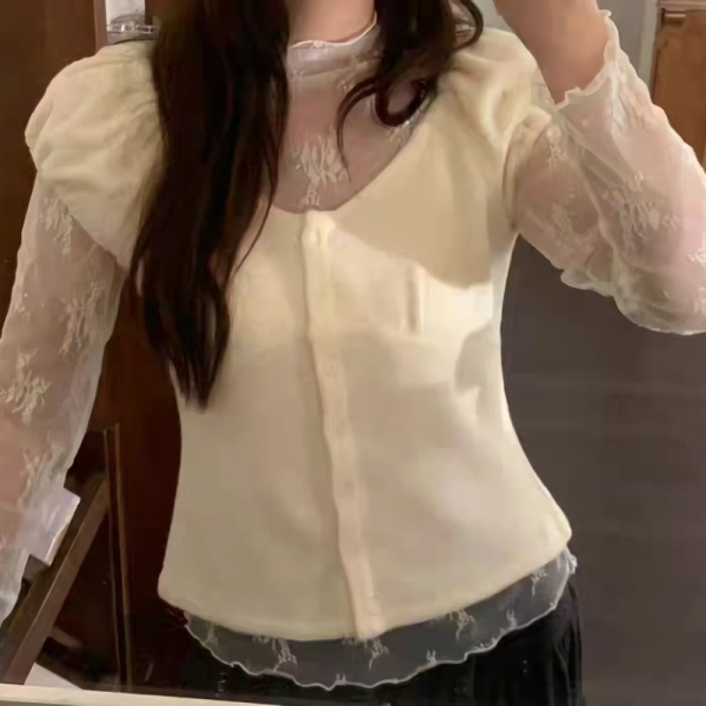 여성 봄 데일리 셔링 퍼프 캡소매 가디건