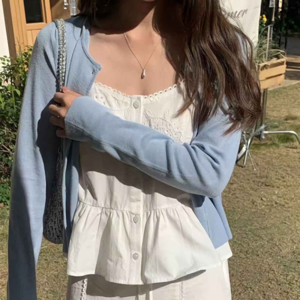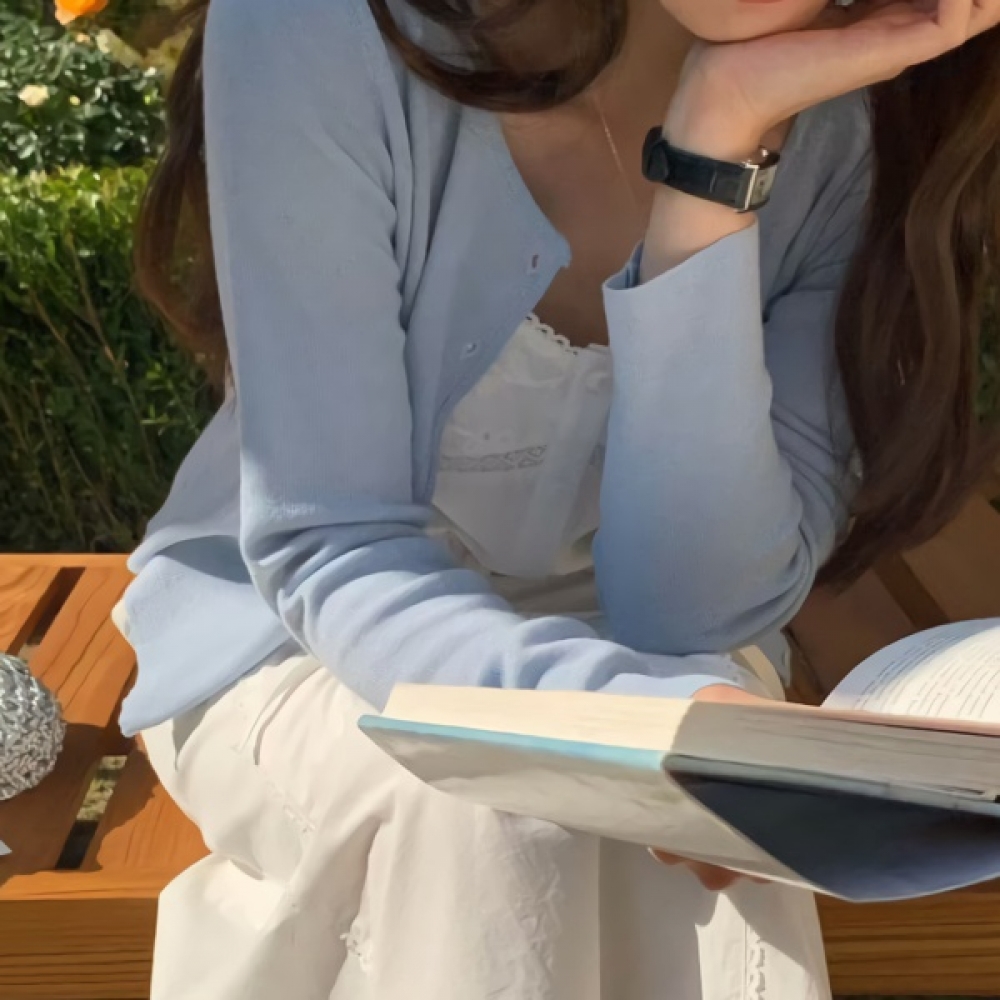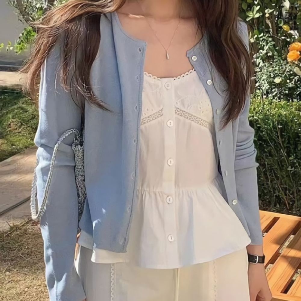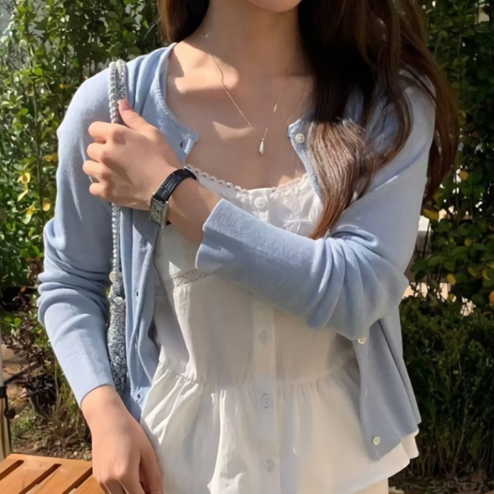 여성 봄 데일리 라운드넥 크롭 가디건