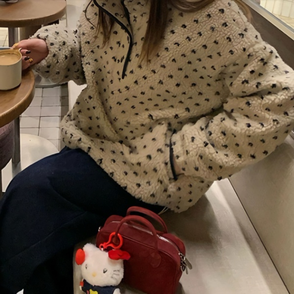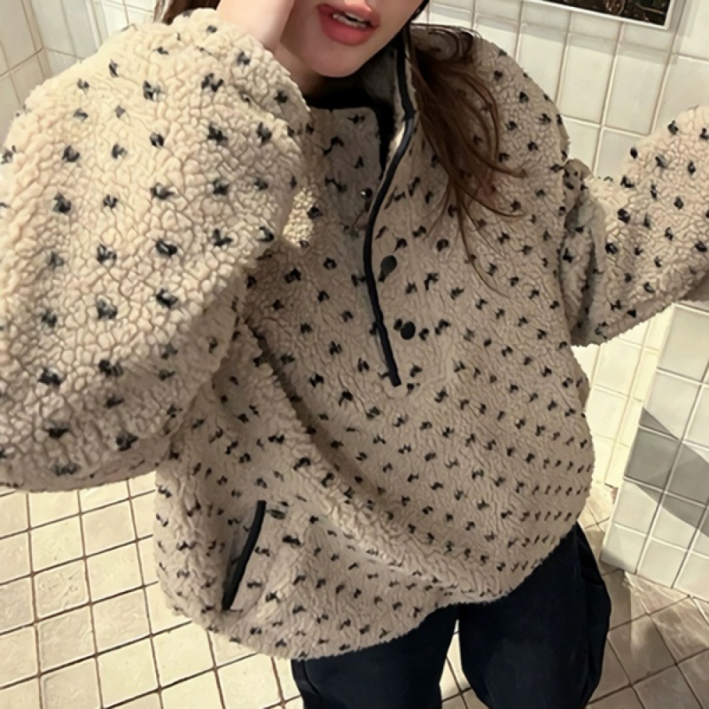 여성 봄 데일리 도트 뽀글이 아노락 티셔츠
