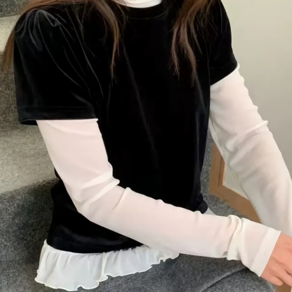여성 봄 데일리 프릴 시스루 티셔츠