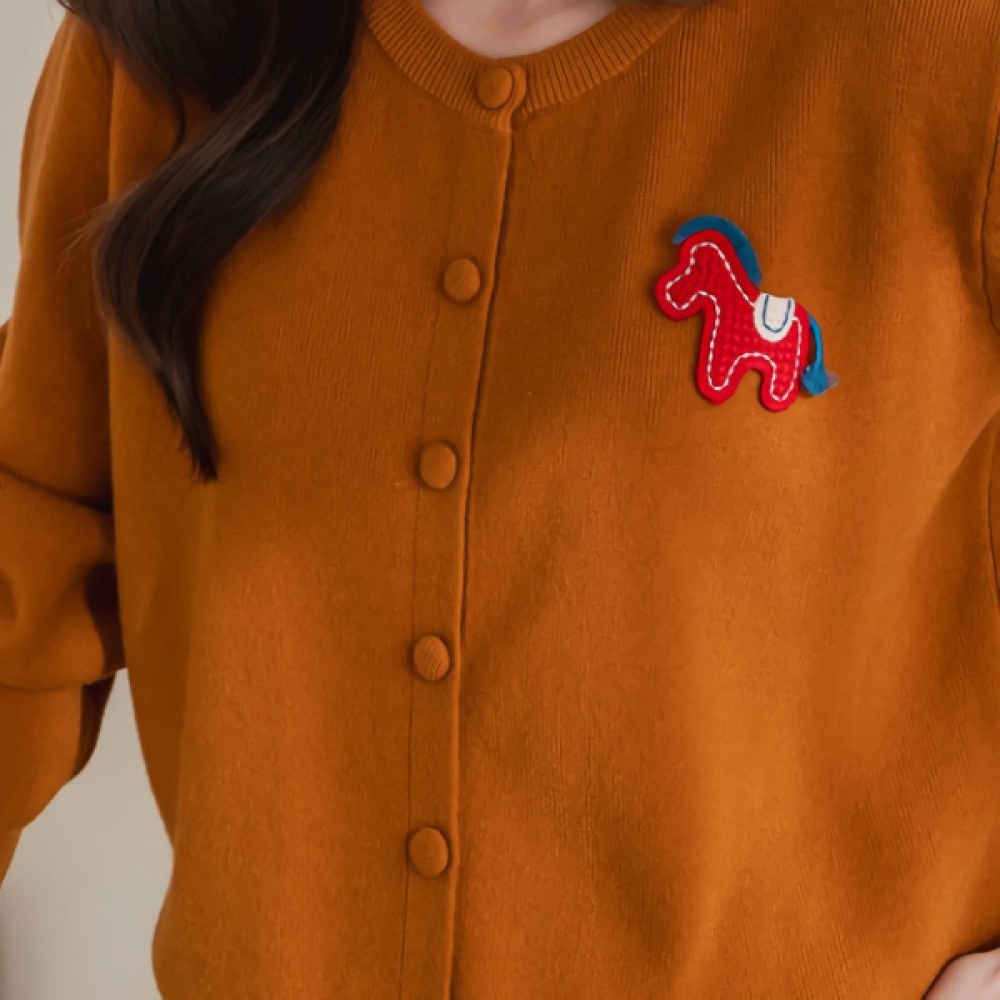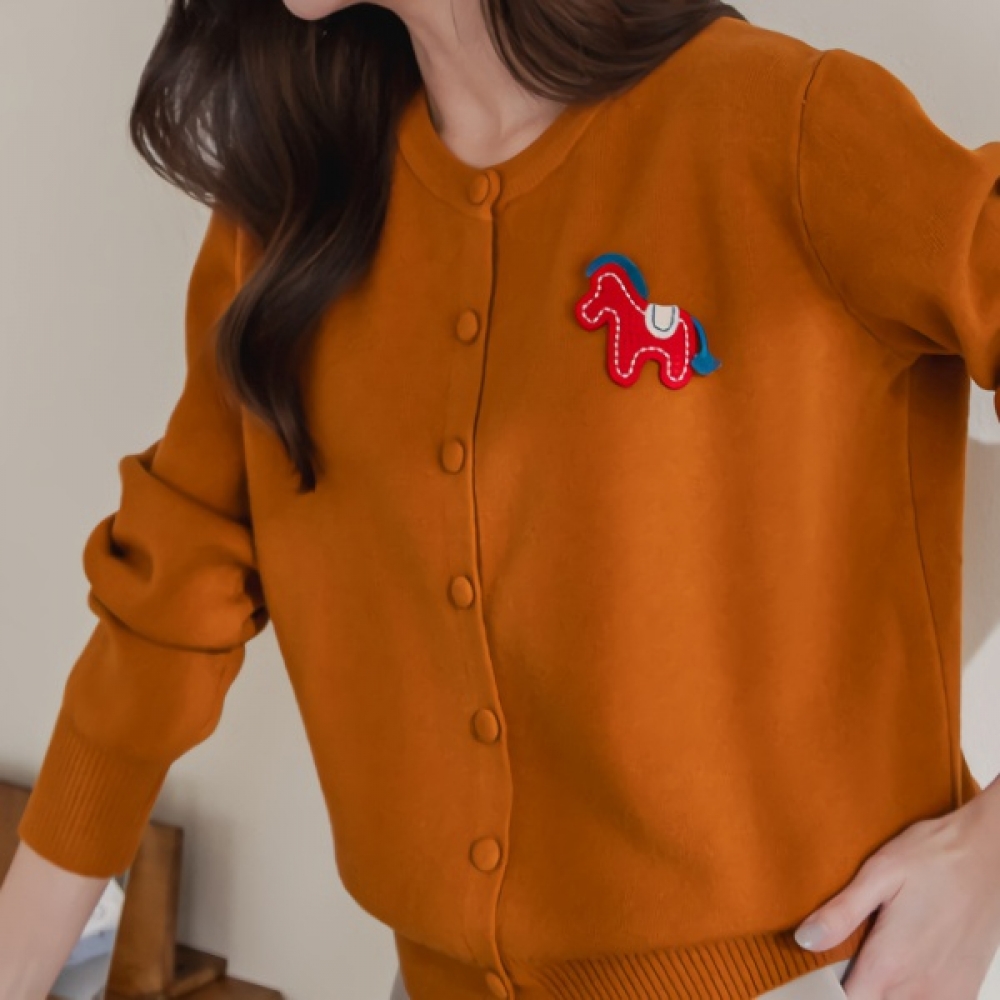 여성 포니 자수 라운드 니트 가디건