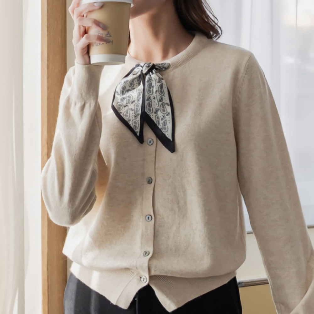 여성 스카프 콤비 기본 라운드 니트 가디건