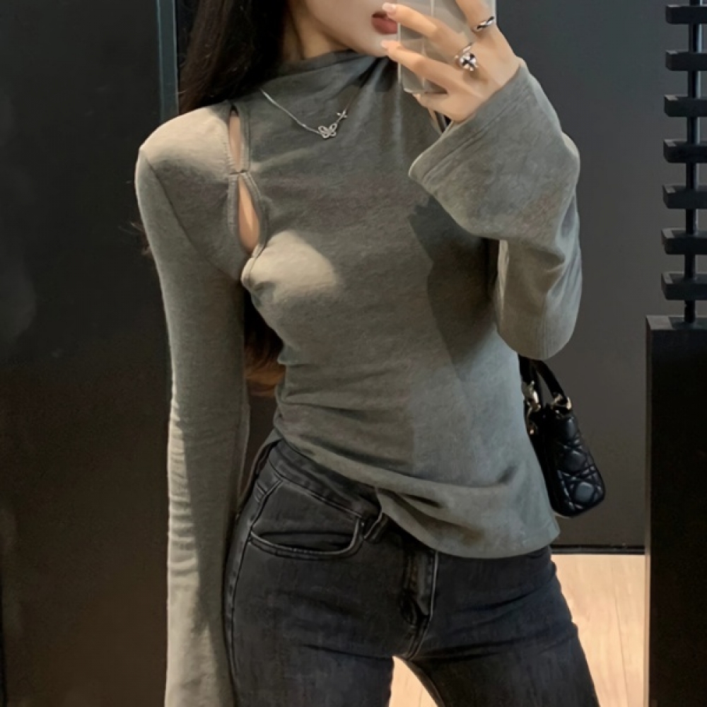 여성 봄 데일리 슬림 보트넥 옆트임 티셔츠
