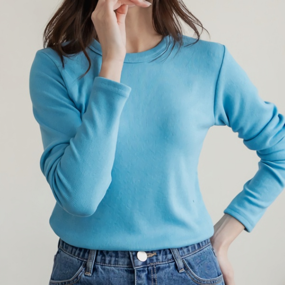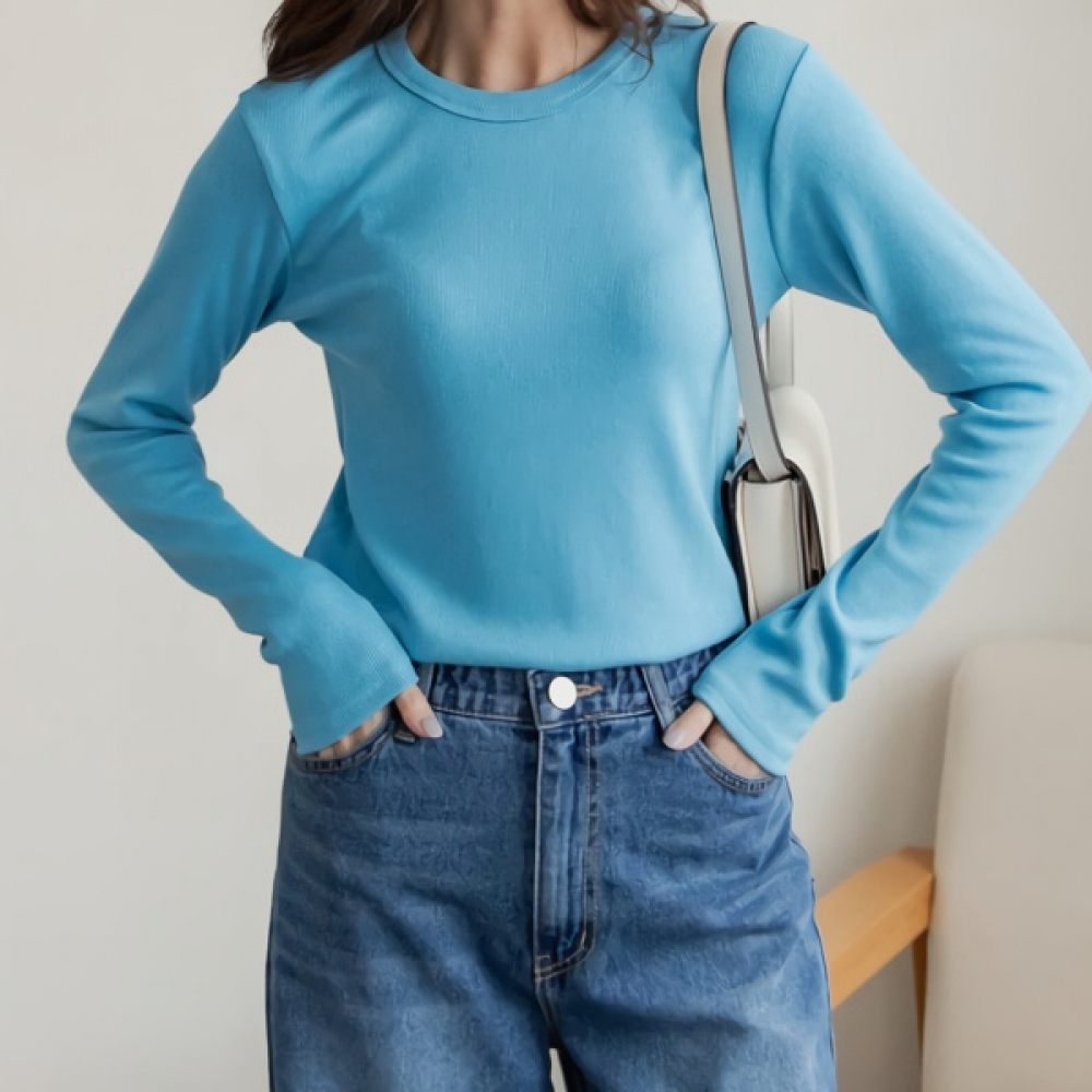 여성 퍼니 베이직 기본 골지 라운드 티셔츠
