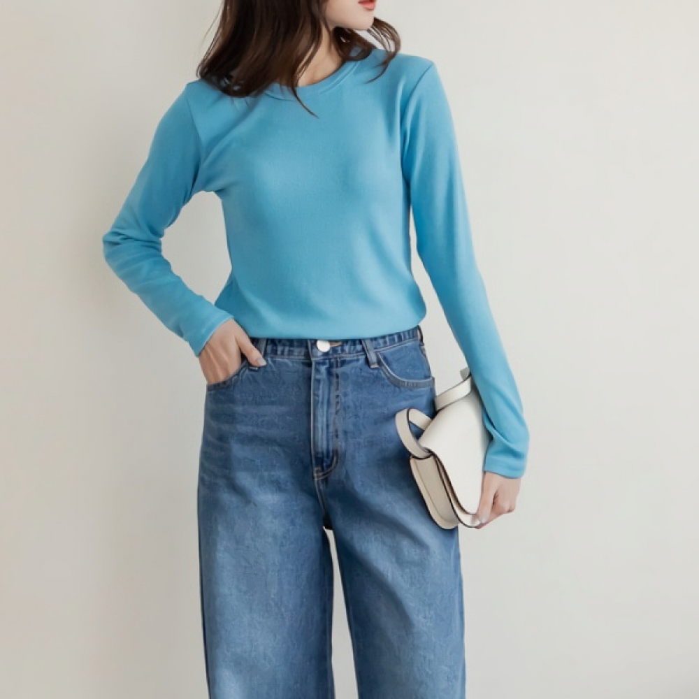 여성 봄 데일리 슬림 보트넥 옆트임 티셔츠