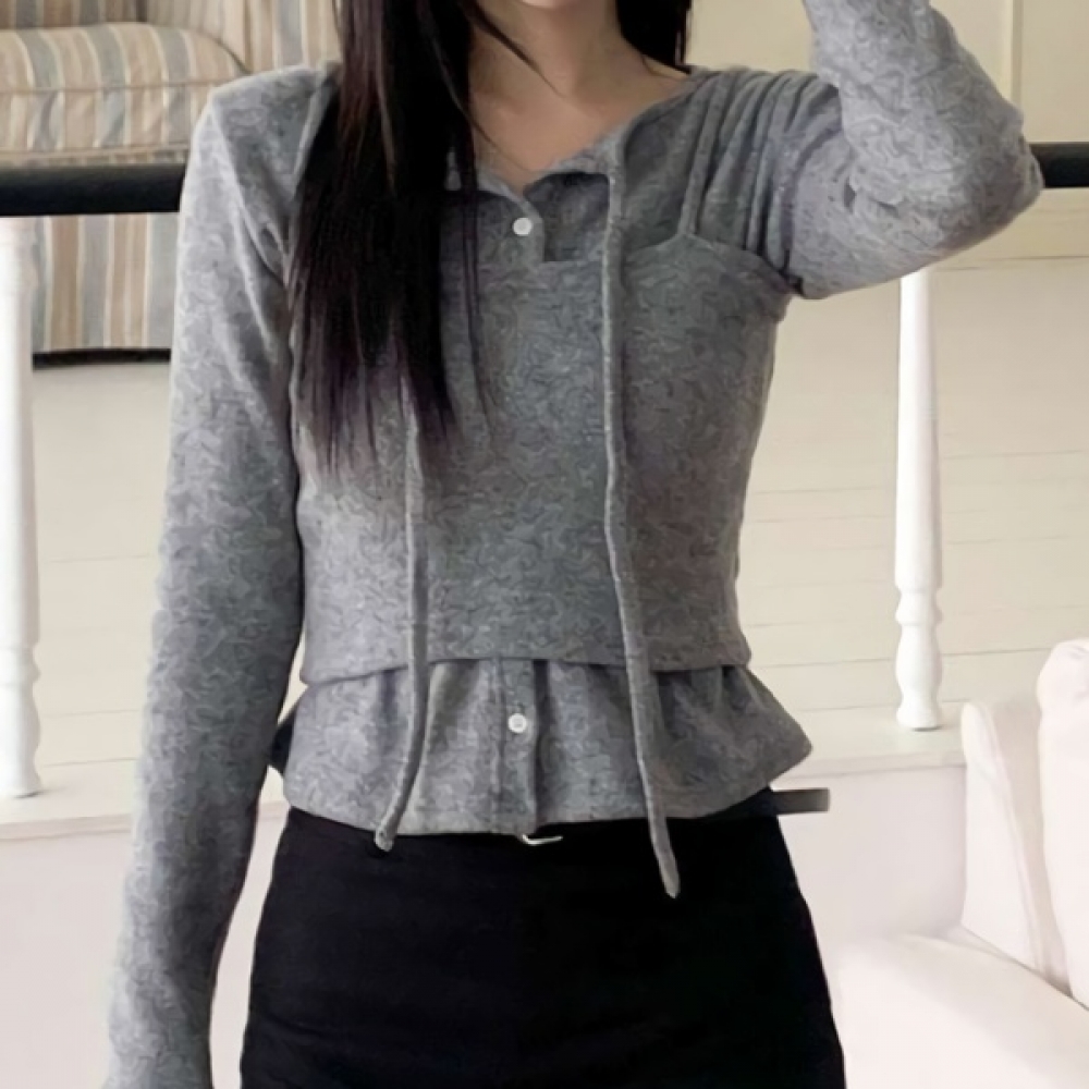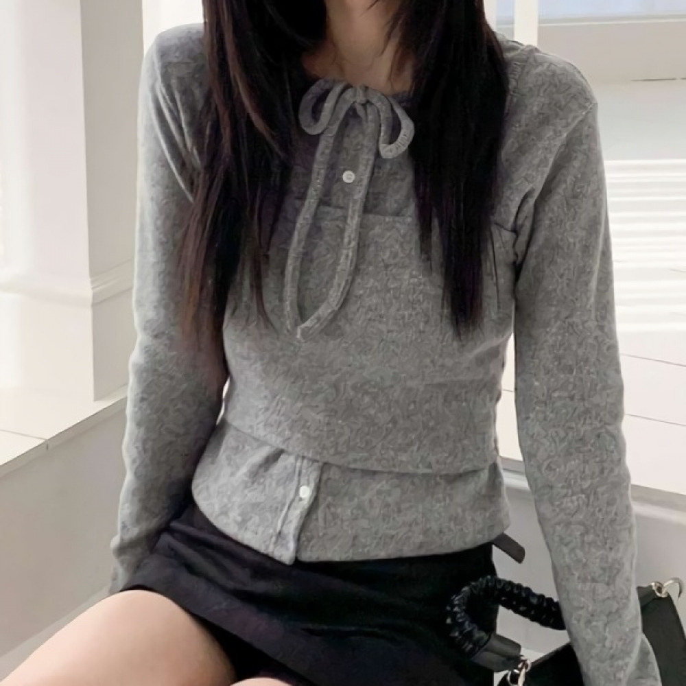 여성 뷔스티에 끈나시 리본넥 가디건 세트