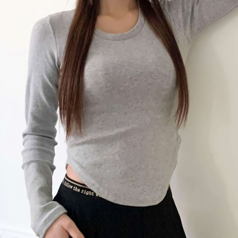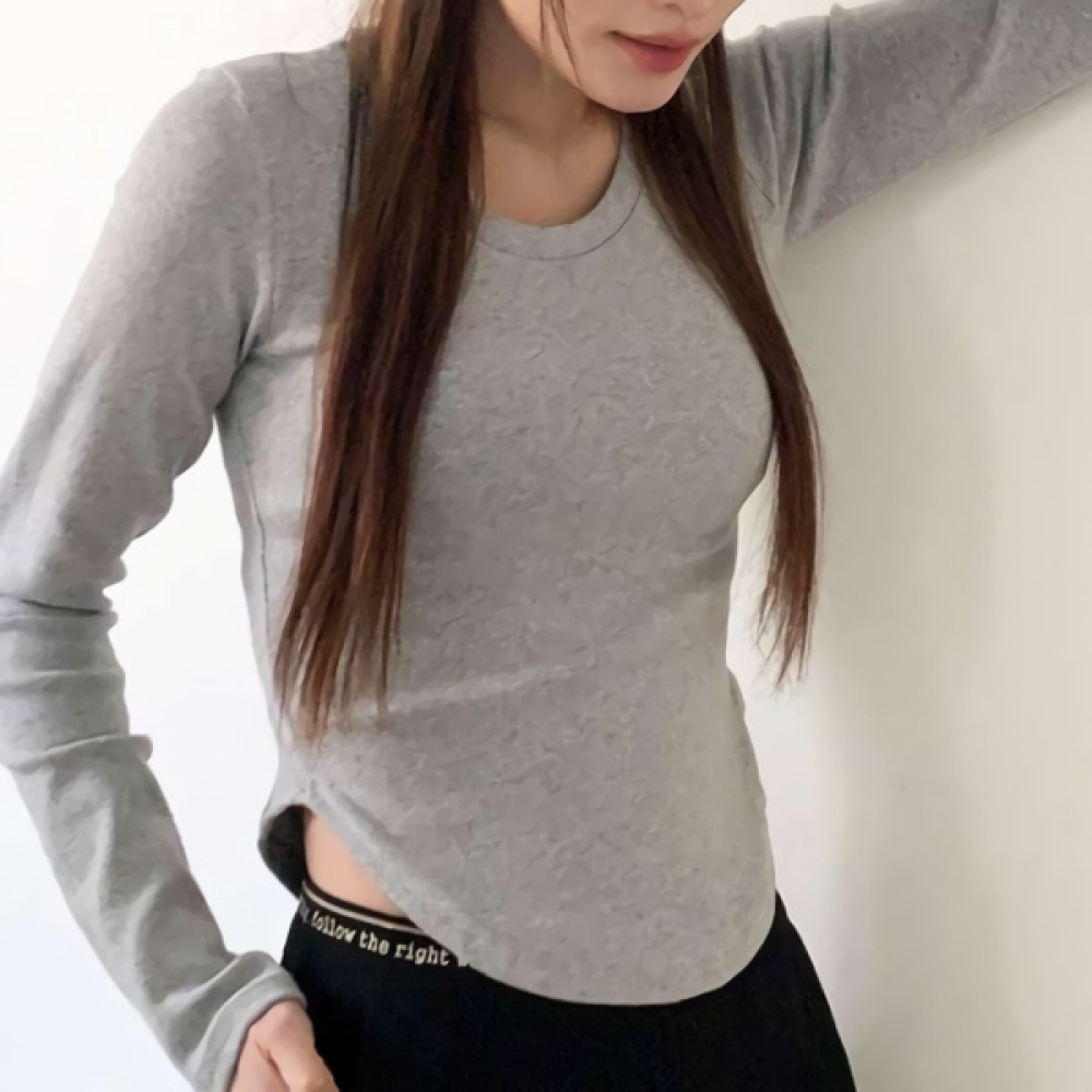 여성 쫀쫀 스판 유넥 밑단 굴림 슬림 긴팔티
