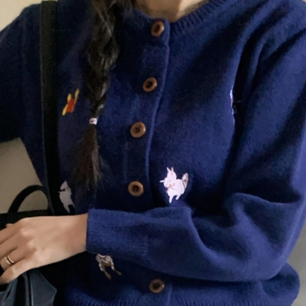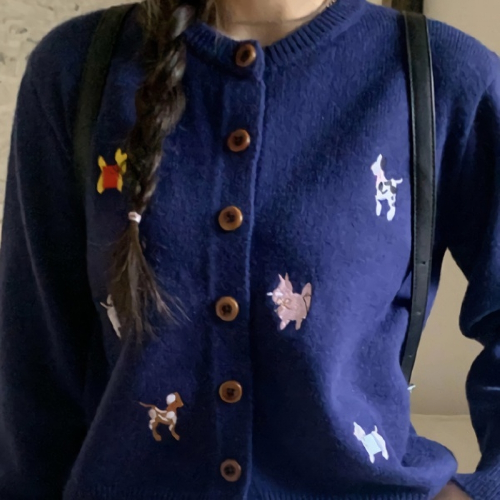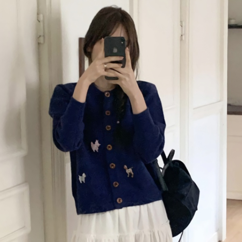 여성 데일리 봄 도톰 동물자수 니트 가디건