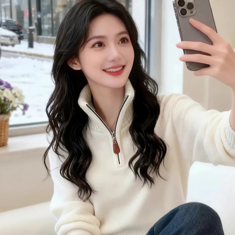 여성 하이넥 겨울 데일리 반집업 니트 스웨터