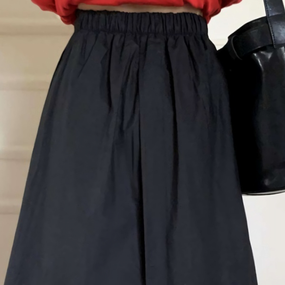 여성 코튼 절개 트임 플레어 밴딩 롱스커트
