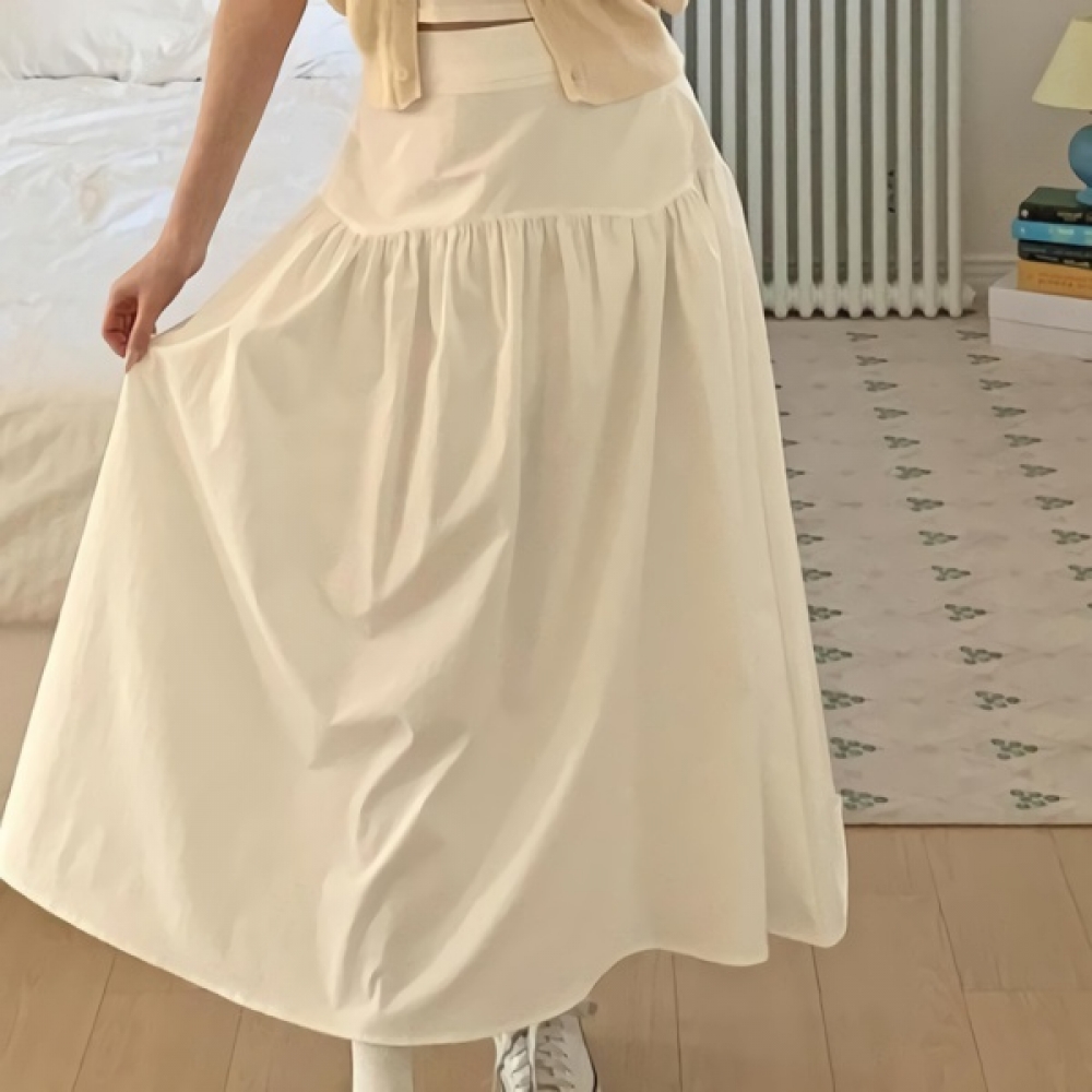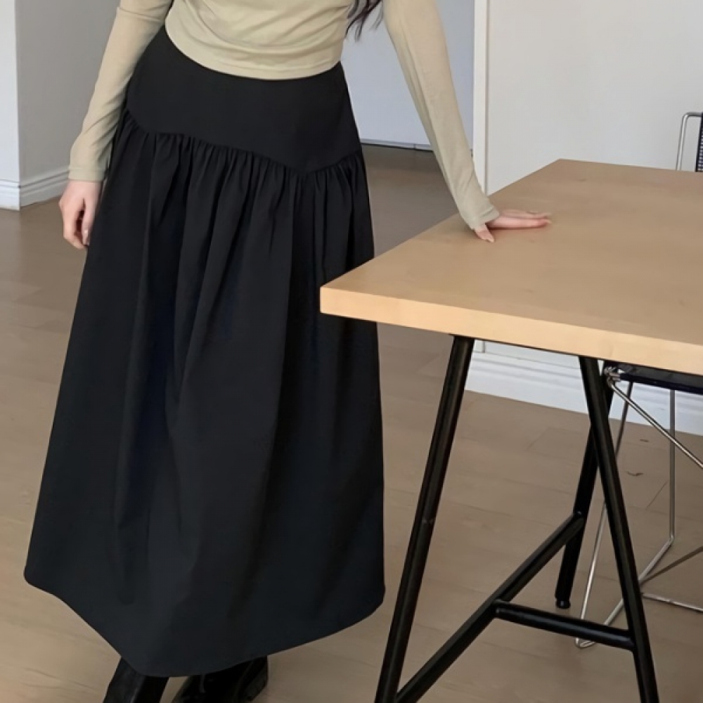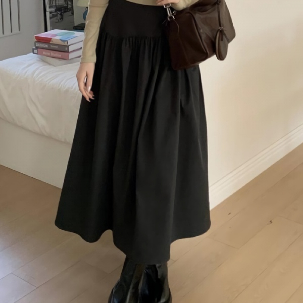 여성 셔링 뒷밴딩 플레어 롱 스커트