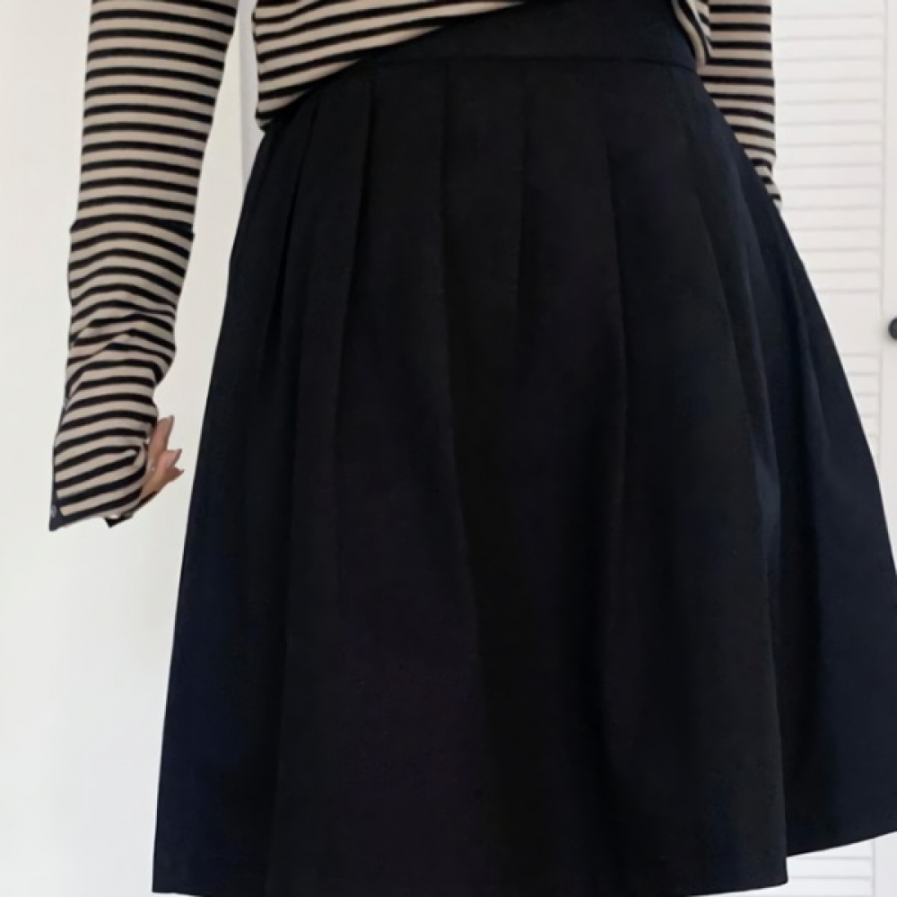 여성 페미닌 플리츠 뒷밴딩 미디스커트