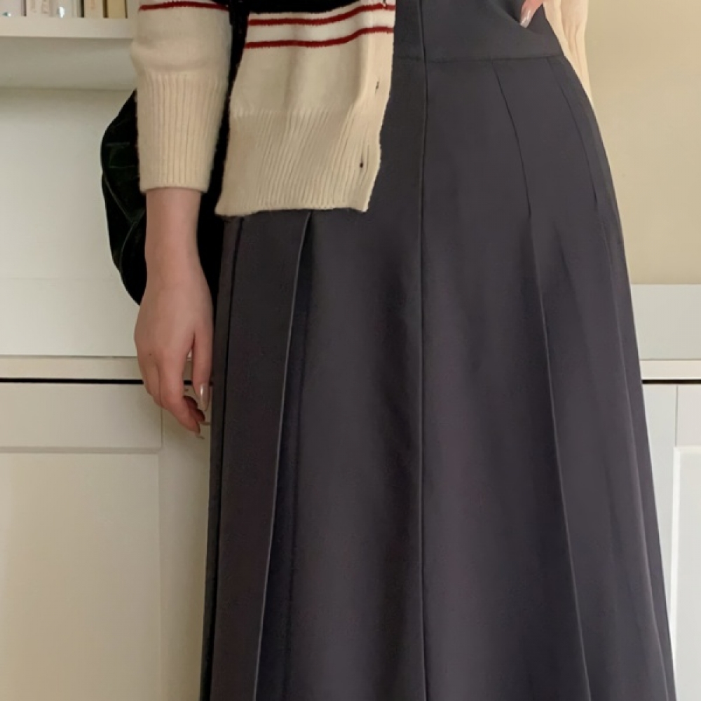 여성 봄 플리츠 핀턱 스판 롱 스커트