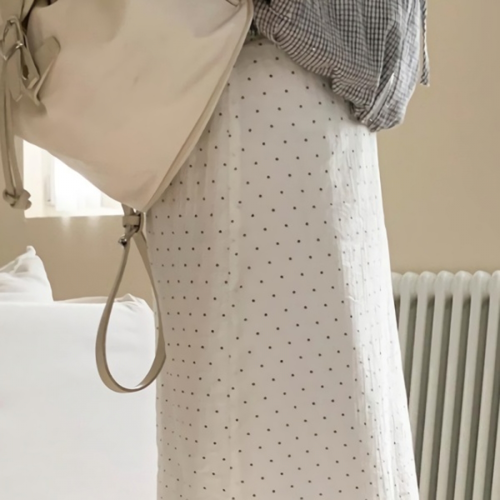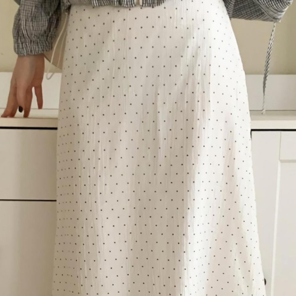 여성 봄 도트 시스루 H라인 롱스커트