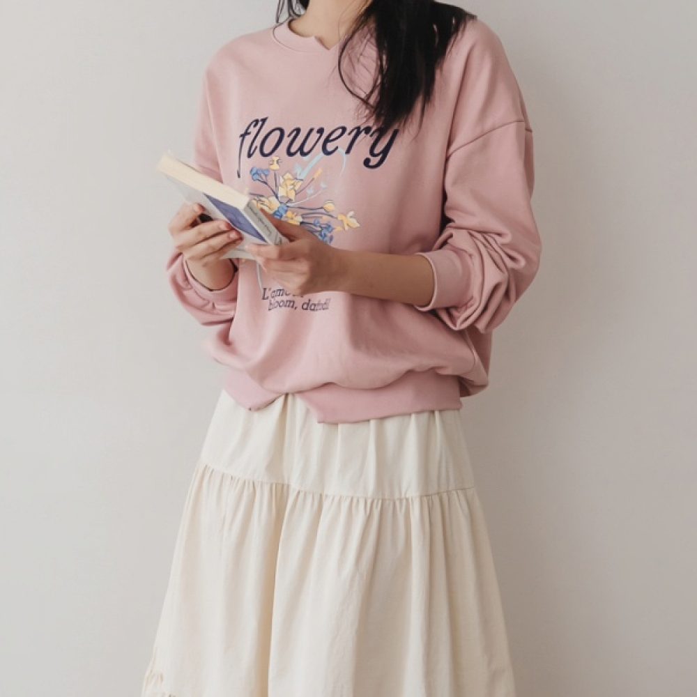 여성 봄 플라워리 나염 맨투맨 티셔츠