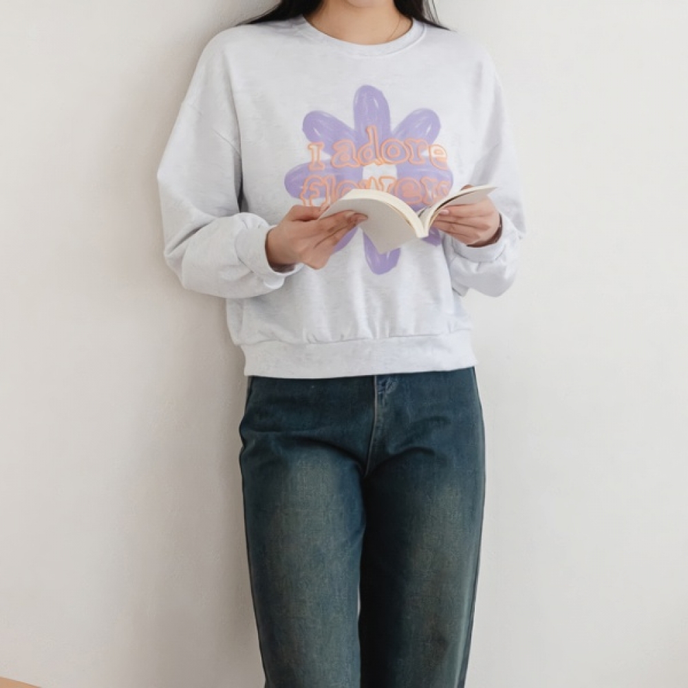 여성 데이지 발포 나염 맨투맨 티셔츠