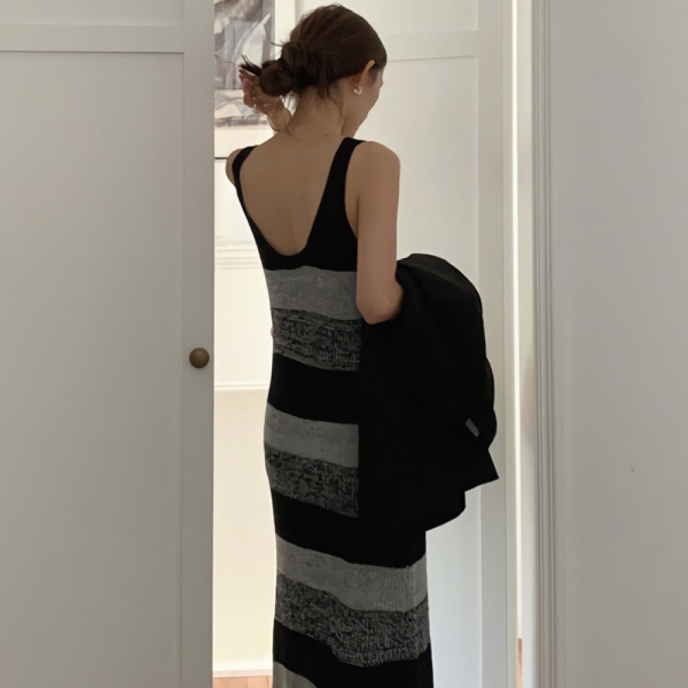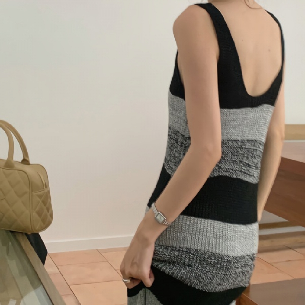 여성 봄 데일리 단가라 민소매 니트 원피스