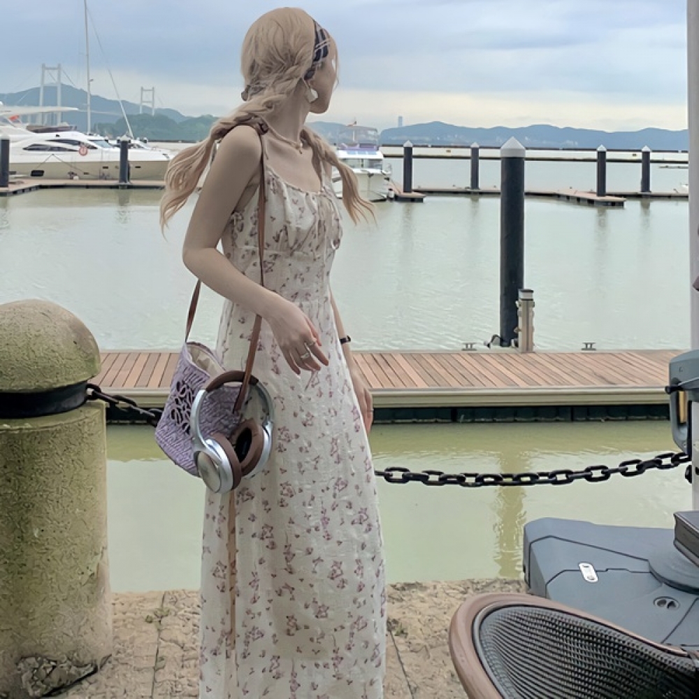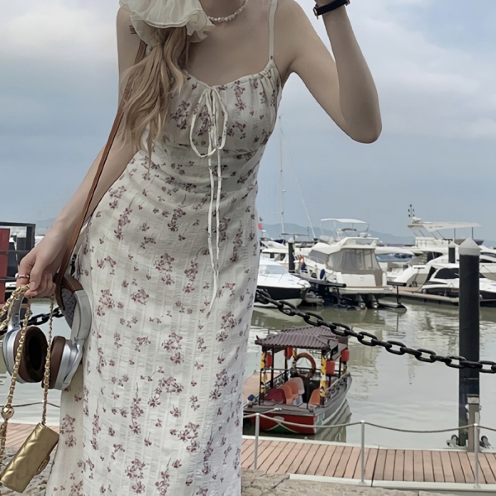여성 봄 데일리 플라워 끈나시 롱원피스