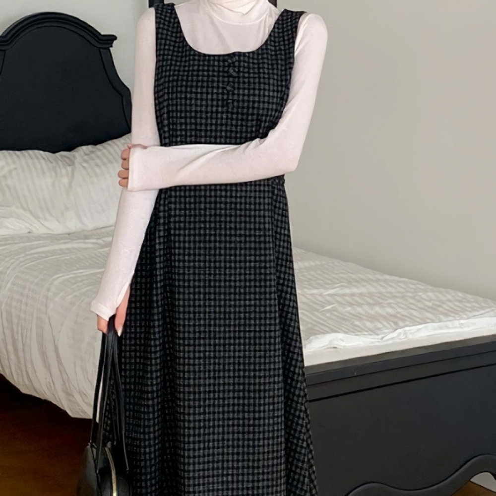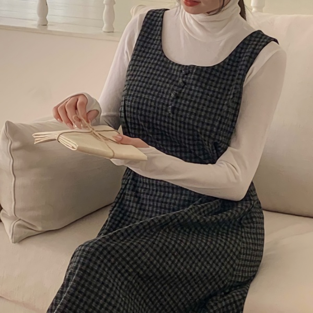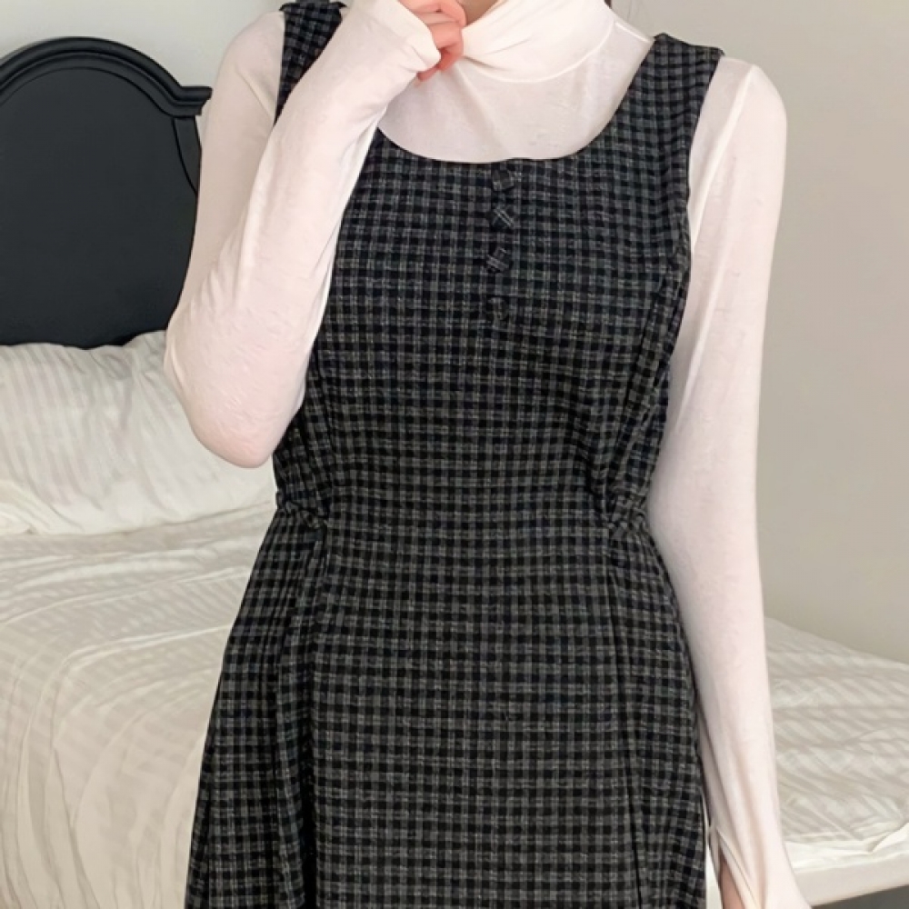 여성 빈티지 모리걸 민소매 체크 롱 원피스