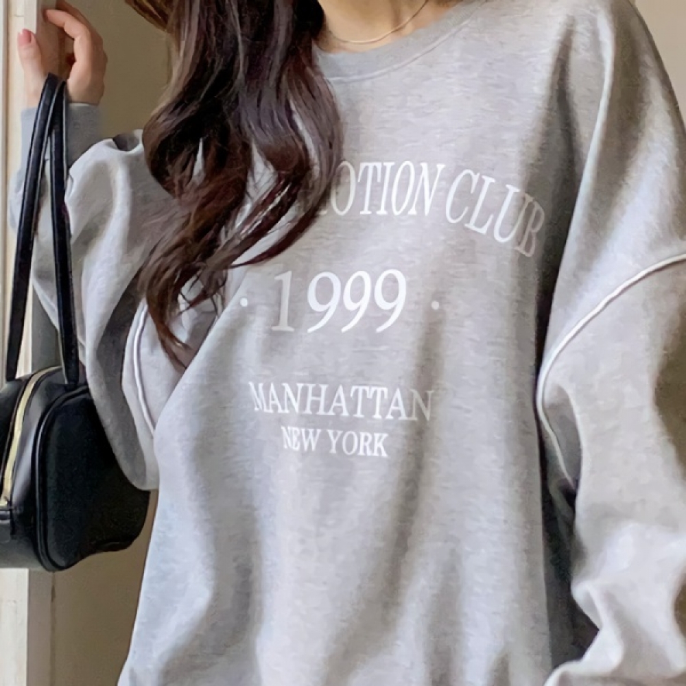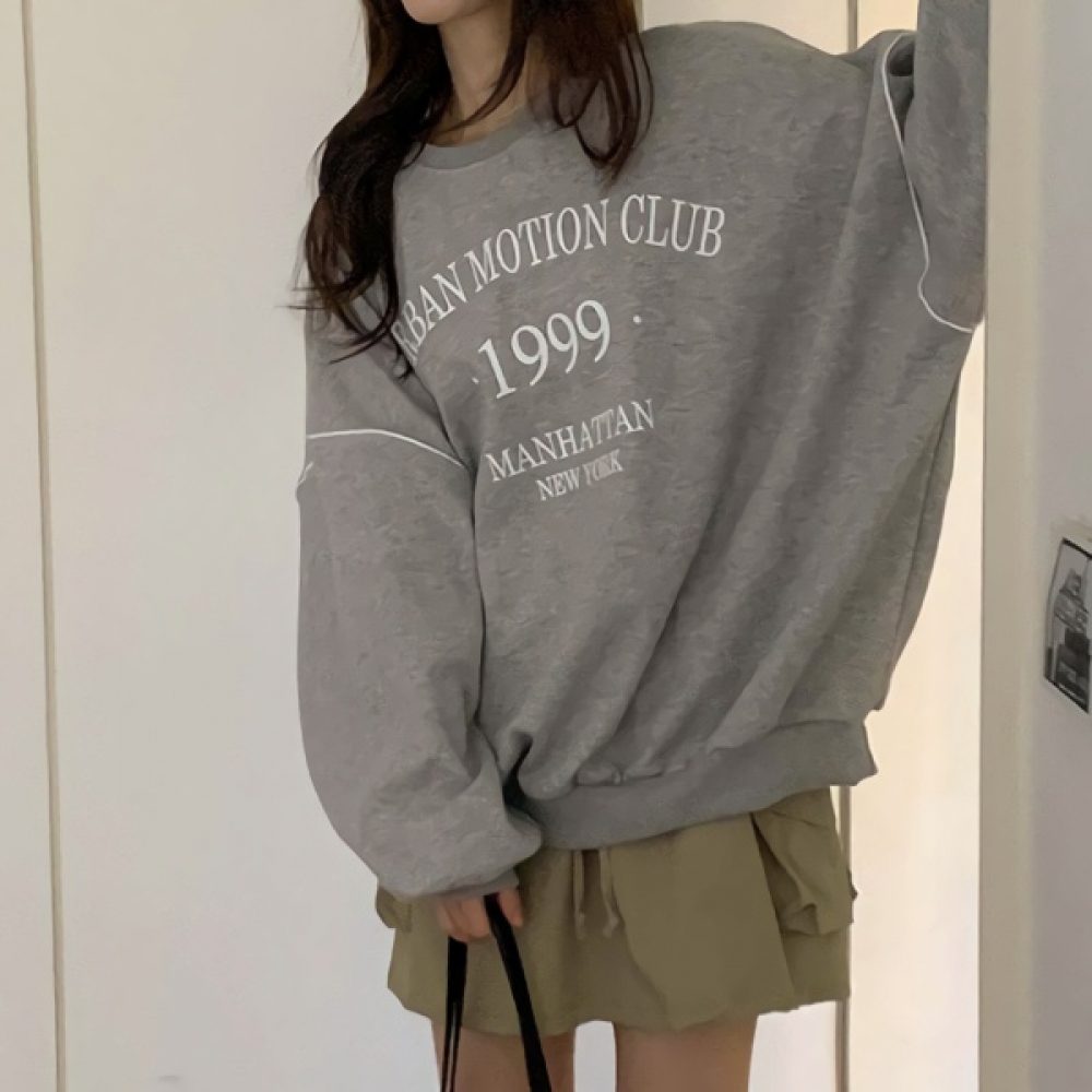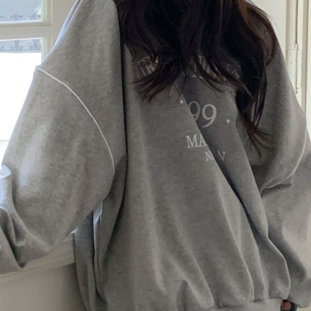 여성 데일리 루즈핏 배색 레터링 맨투맨