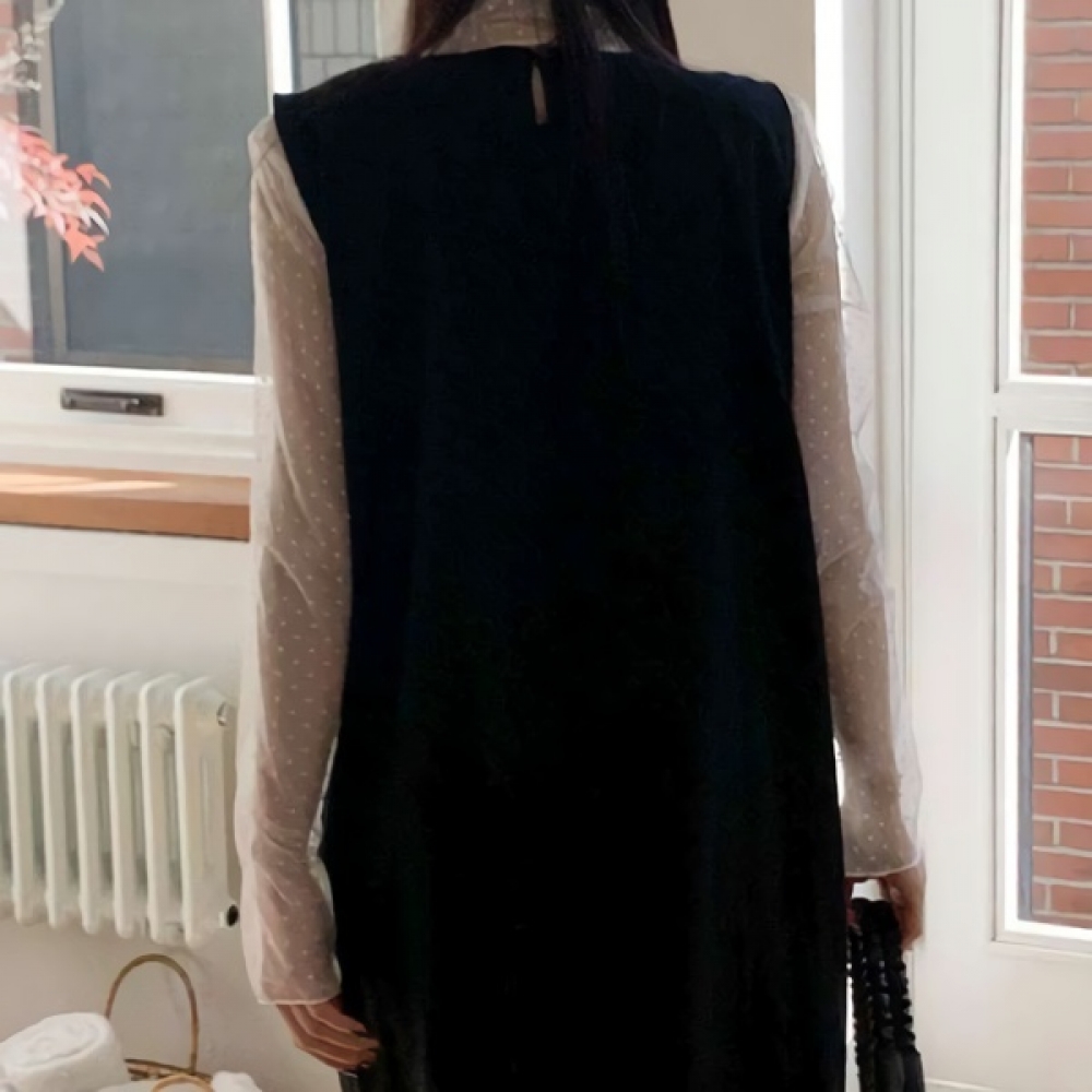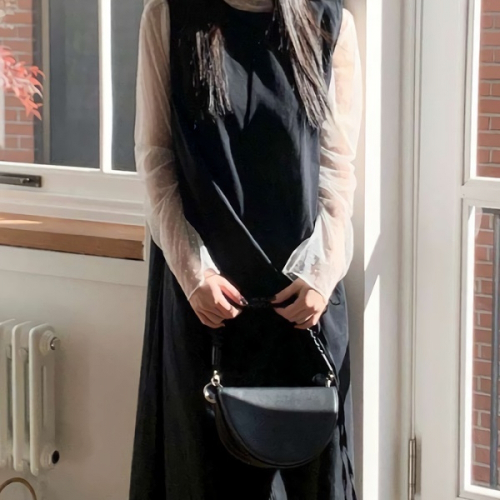 여성 묶음 포인트 라운드 민소매 롱 원피스