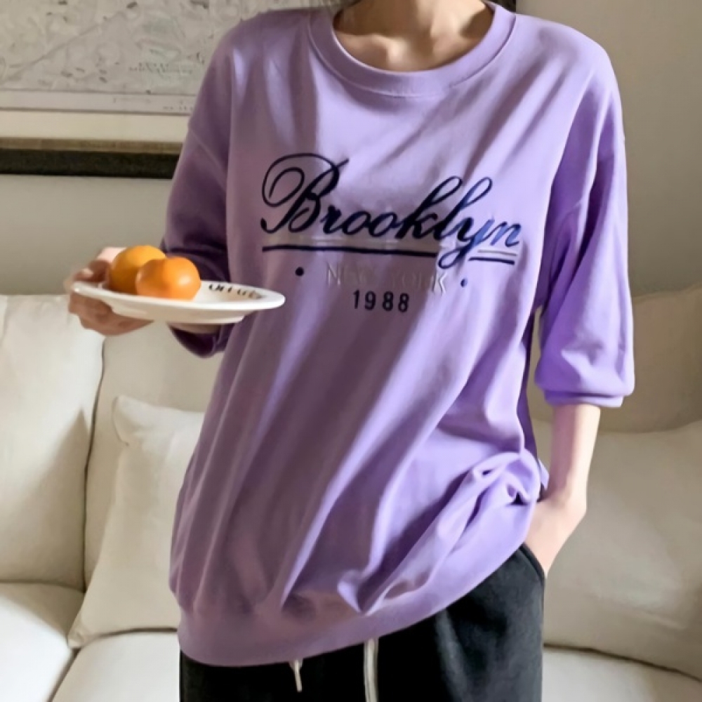 여성 클래식 레터링 자수 7부 맨투맨
