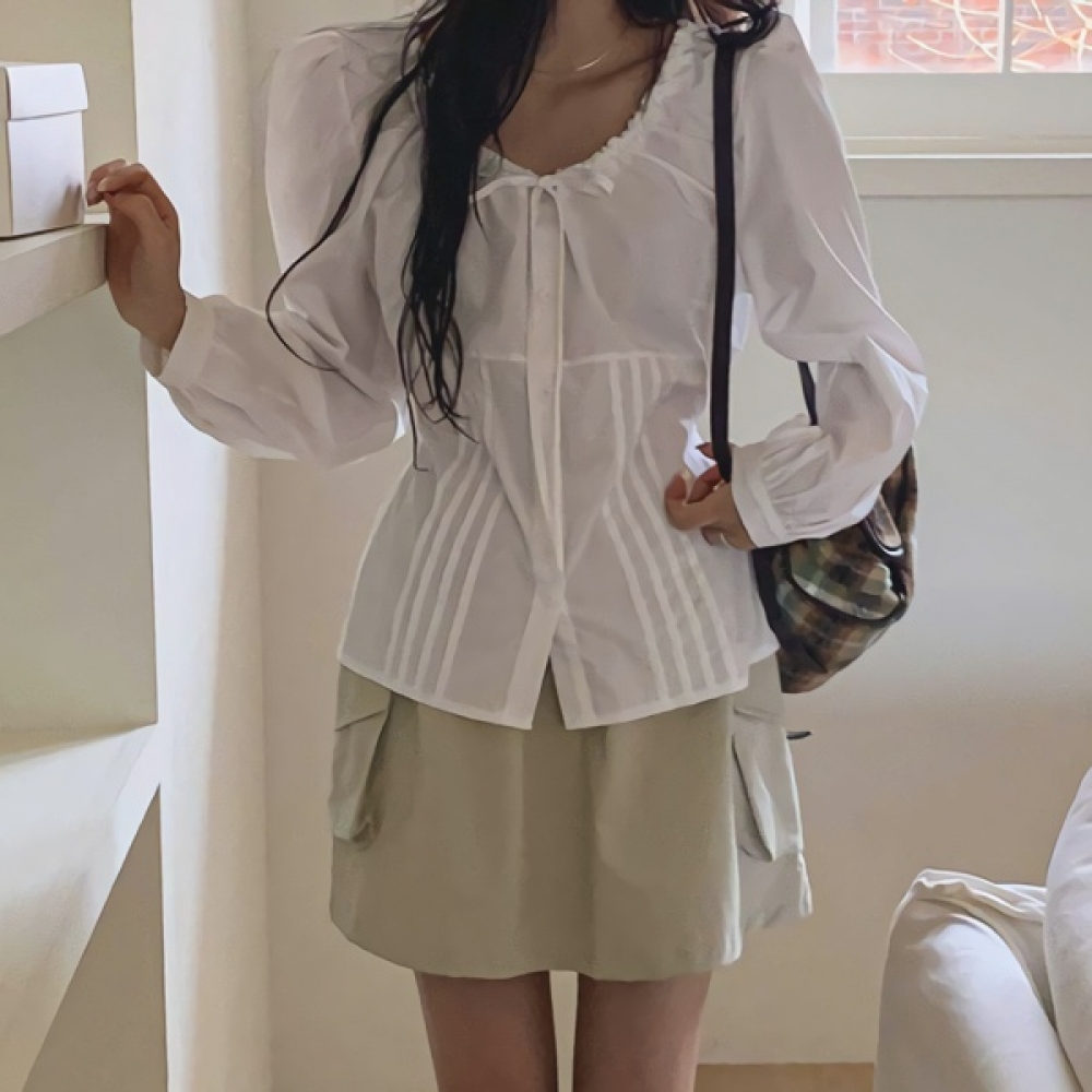 여성 봄 데일리 사이드 포켓 리본 치마바지