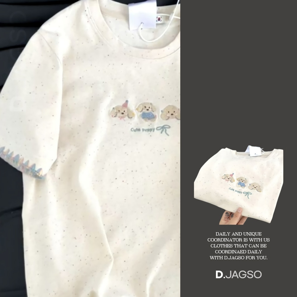 여성 달마시안 캣츠 자수 패치 반팔 티셔츠