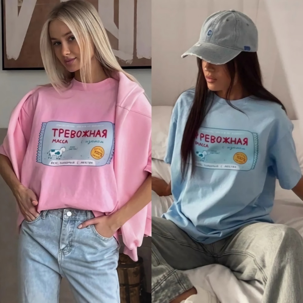 여성 키치 빅 일러스트 프린팅 반팔 루즈핏 티
