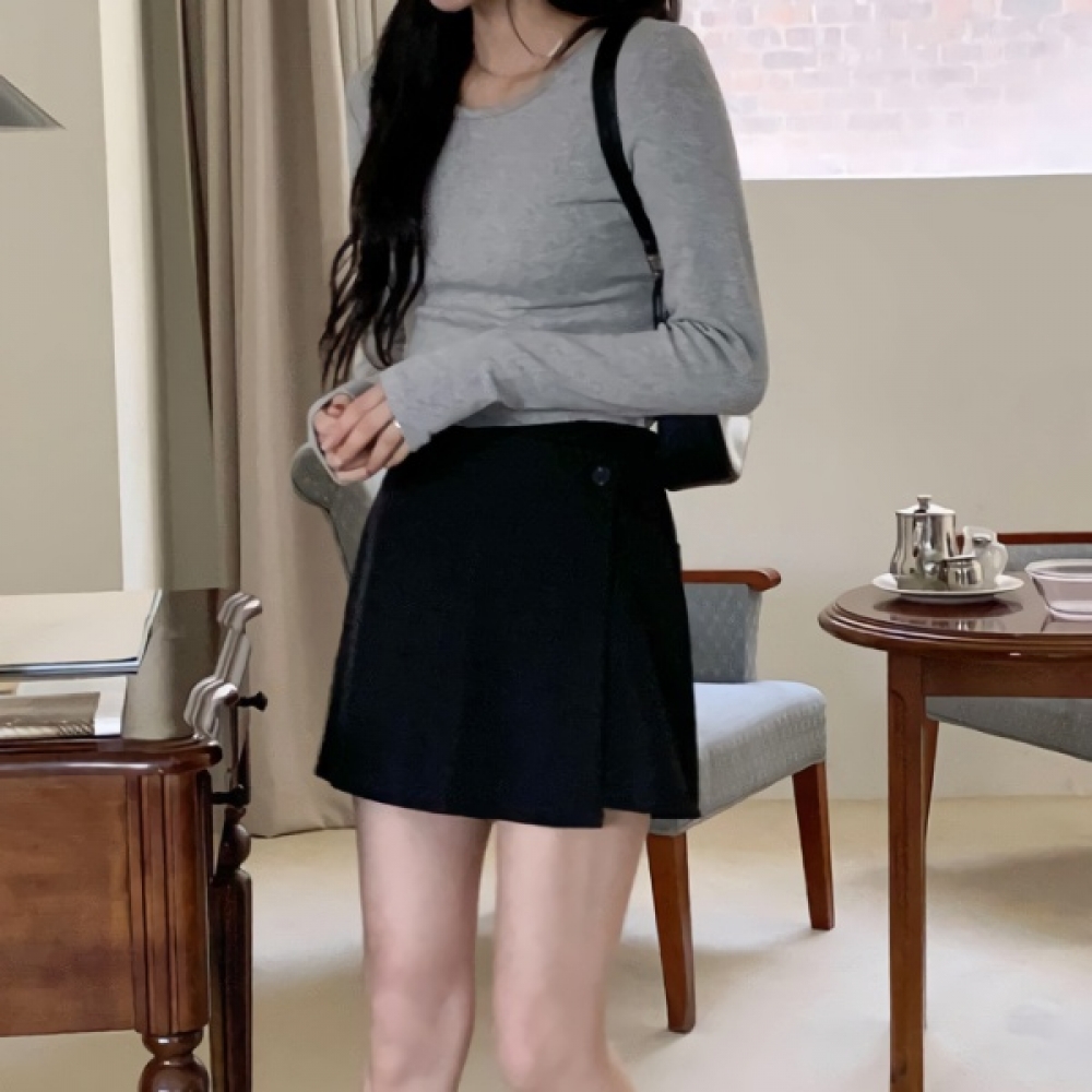 여성 봄 여름 랩 단추 미니 치마바지