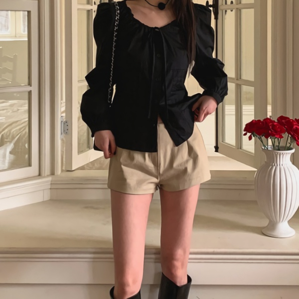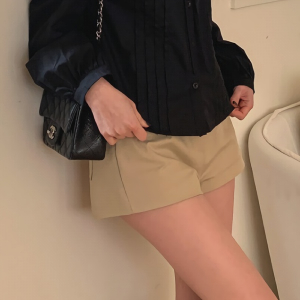 여성 봄 여름 힙 키치 핀턱 스판 숏팬츠