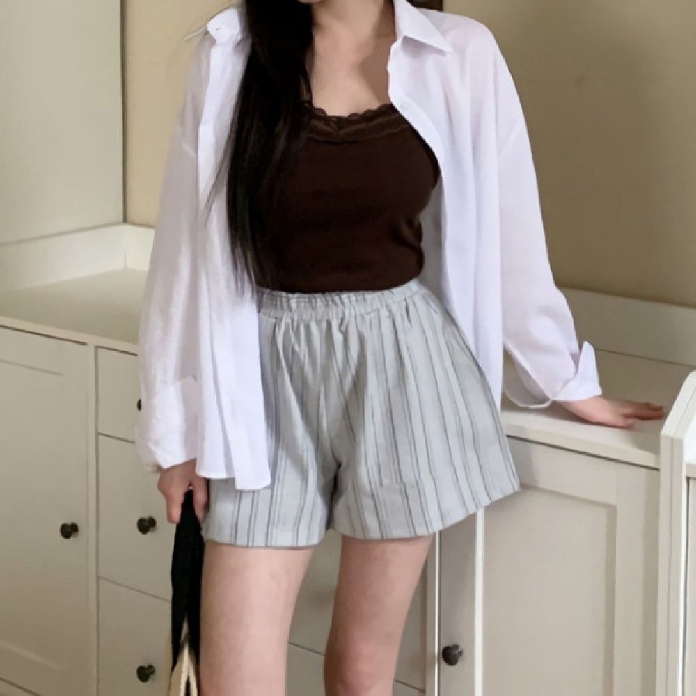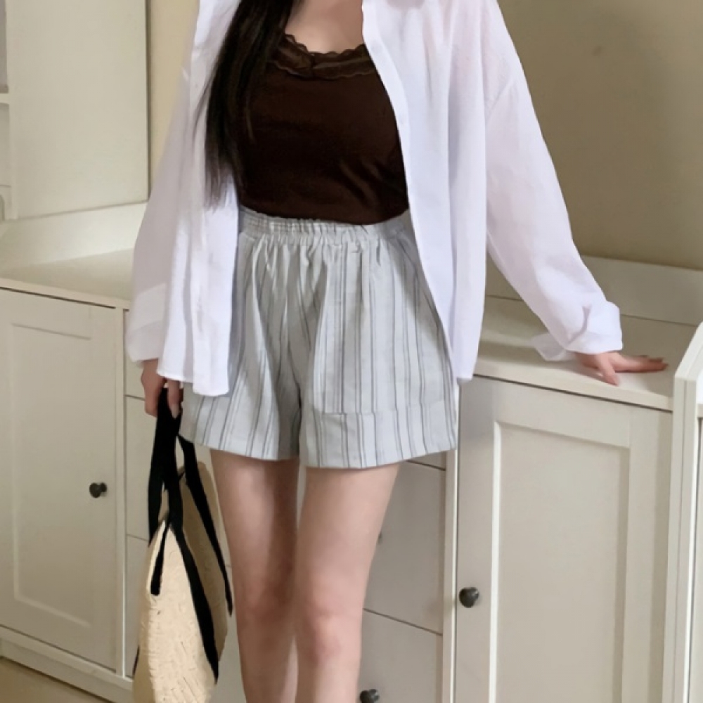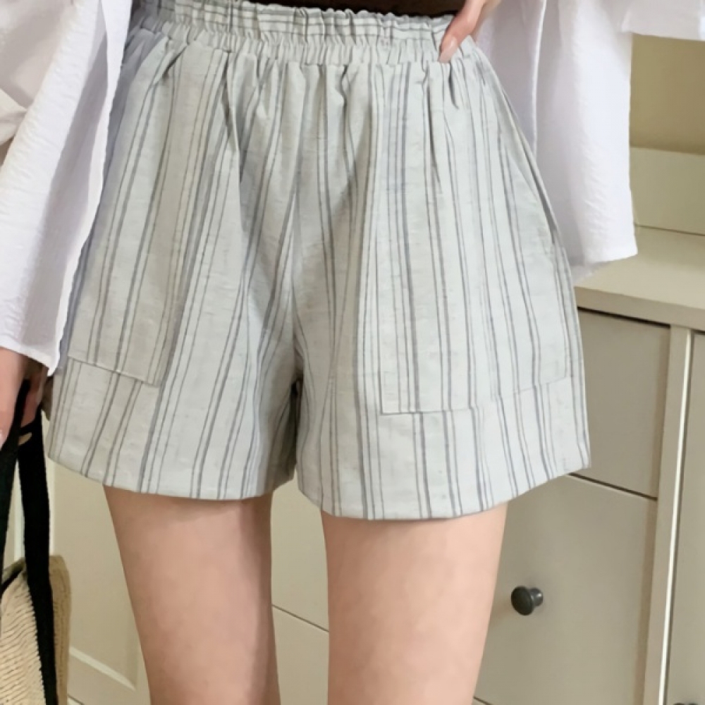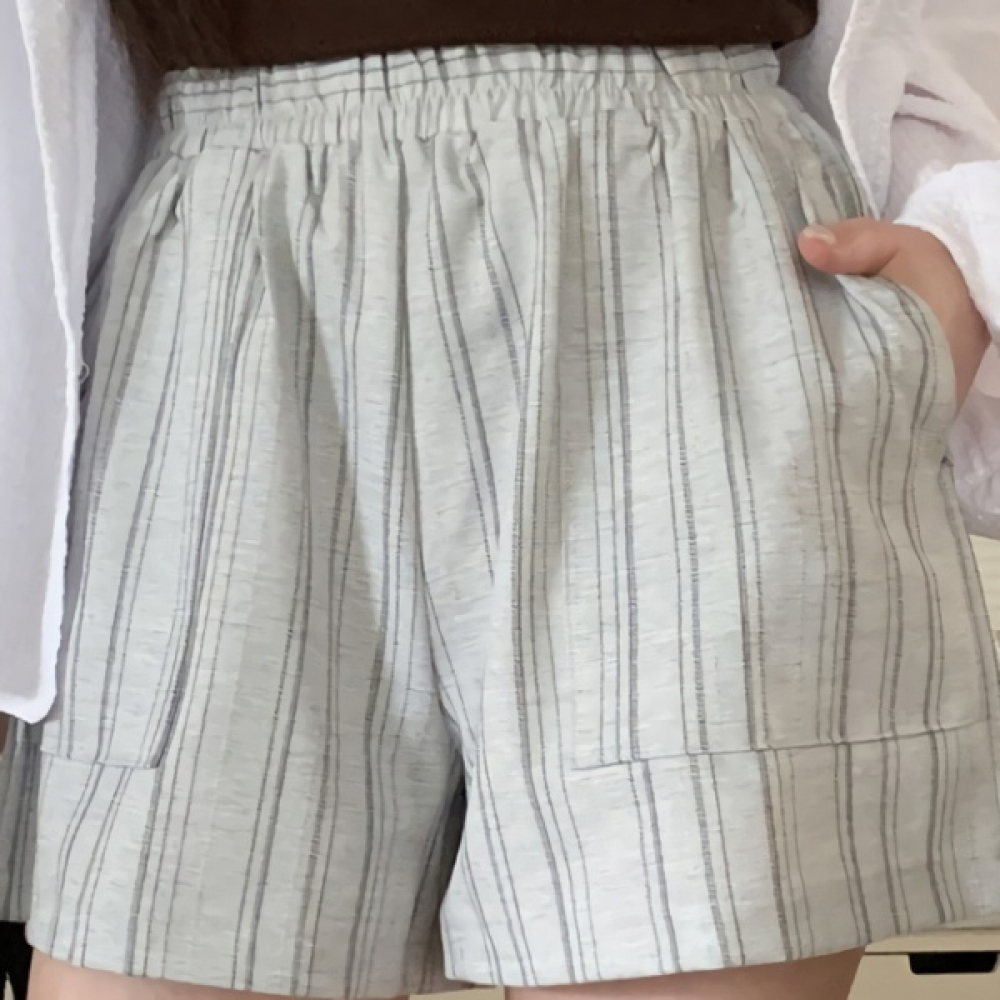 여성 세로 스트라이프 와이드 밴딩 숏 팬츠