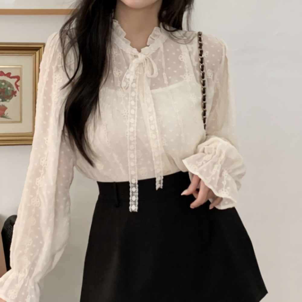 여성 봄 여름 핀턱 프릴 캉캉 블라우스