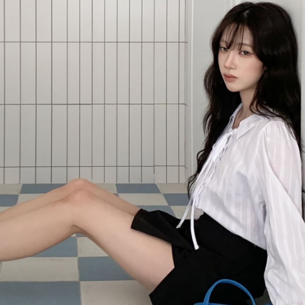 여성 봄 여름 핀턱 프릴 캉캉 블라우스