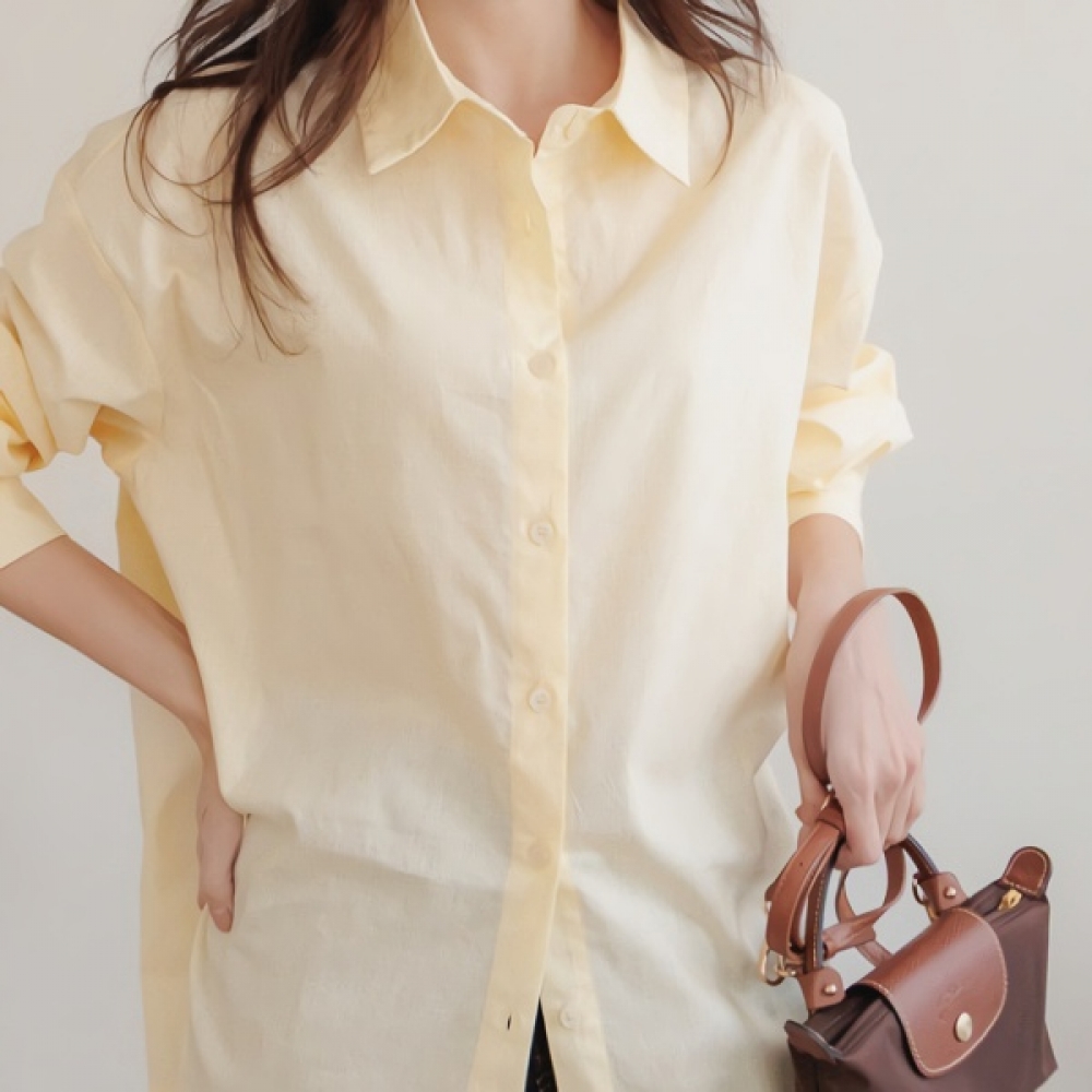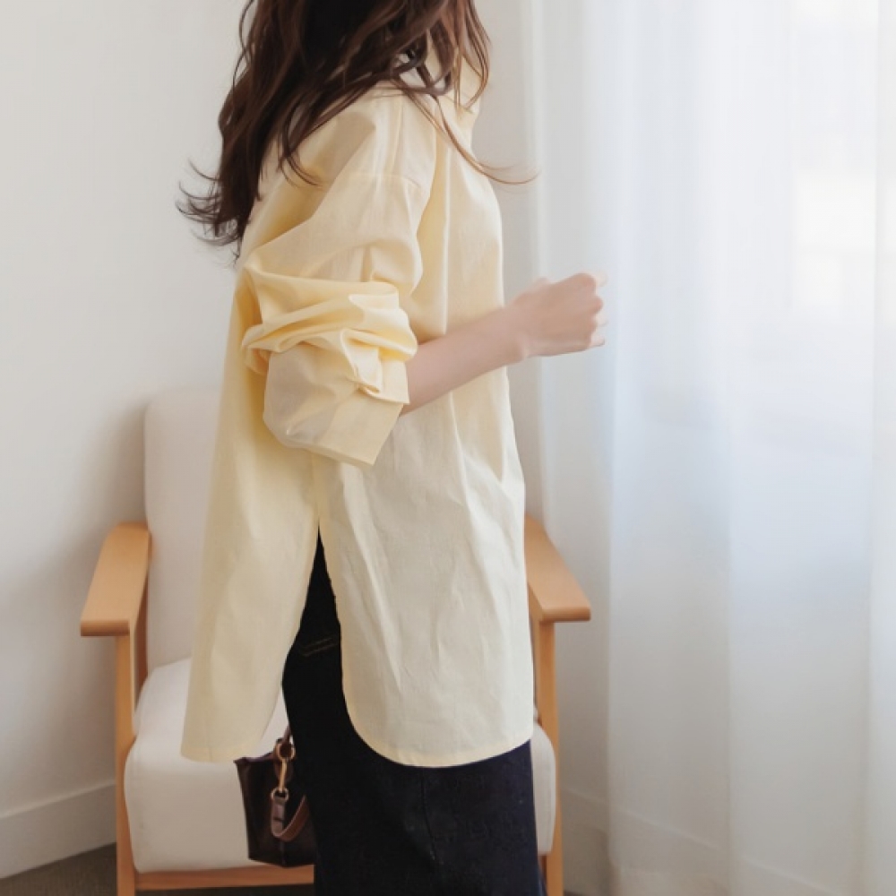 여성 봄 여름 오버핏 무지 포켓 코튼 셔츠